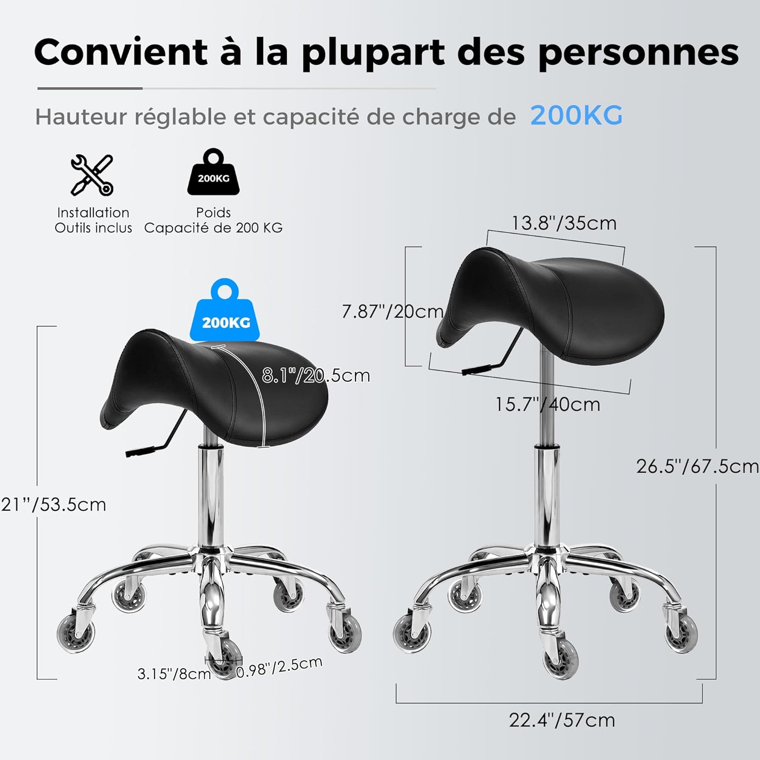 Facile à assembler:L’installation de ce tabouret de selle est très simple. Il suffit de suivre les instructions d’installation incluses,aucun outil n’est nécessaire et le produit peut être installé en quelques minutes seulement