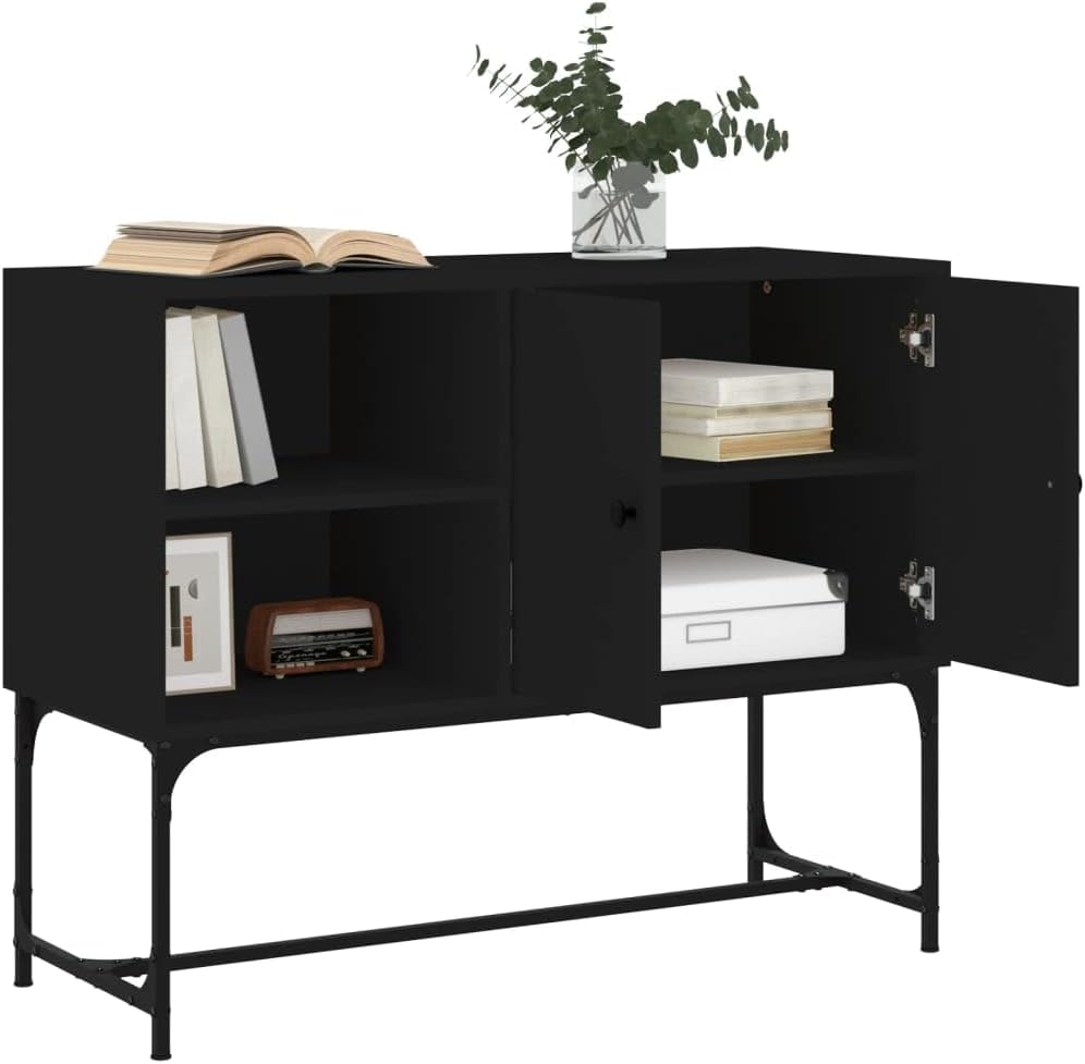 Matériau durable : Holzwerkstoff ist ein Material von außergewöhnlicher Qualität mit glatter Oberfläche, das sich durch Festigkeit, Stabilität und Feuchtigkeitsbeständigkeit auszeichnet.Reichlich Stauraum: Avec ses 4 compartiments, l’armoire d’appoint offre beaucoup d’espace de rangement pour ranger différents objets quotidiens bien organisés et à portée de main. Plaque supérieure stable et robuste : Die Oberplatte eignet sich perfekt, um deine Dekoartikel, Bilderrahmen und Topfpflanzen zur Schau zu stellen.Praktische Türen: Derrière les portes, vous pouvez ranger vos objets les plus importants à l’abri de la poussière. En outre, les poignées sur les portes facilitent l’ouverture du buffet. Pieds en métal : Les pieds en métal donnent à votre intérieur une touche moderne et agréable tout en assurant la stabilité.