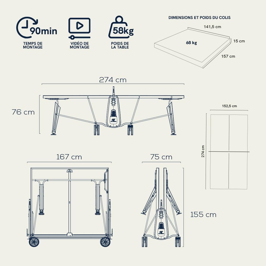 Table d’extérieur haut de gamme : la table 400X Cornilleau est conçue pour résister aux intempéries et pour une utilisation en extérieur.
