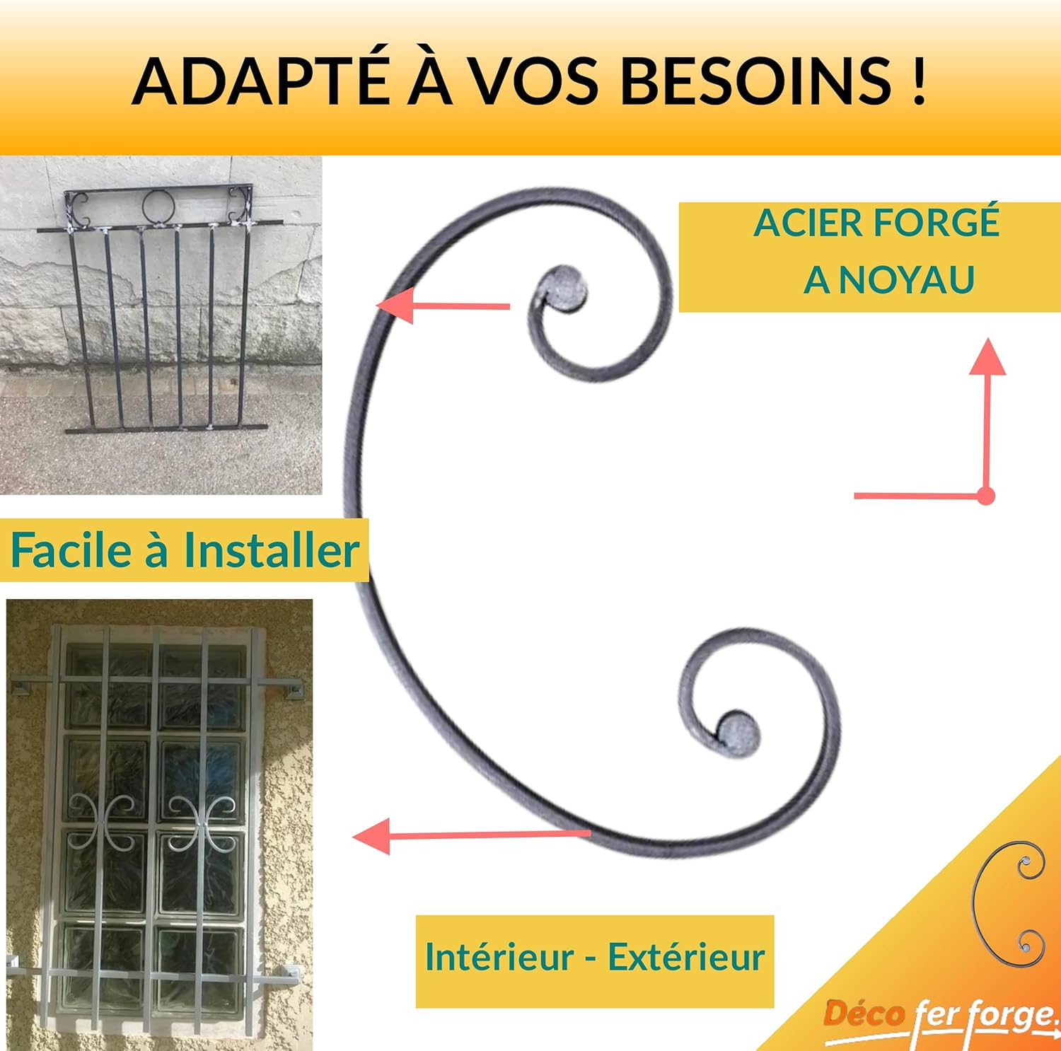 TRÈS BON Rapport Qualité/Prix pour notre VOLUTE Decoration à Souder, nous vous proposons une volute adaptable à votre Clôture Peut venir en déco panneau de pare feu Cheminee, de Jardin de Balcon de Terrasse Porte UTILITÉ car notre volute Acier forgee convient à la fois pour une installation facile en Interieur et en Exterieur – 1 pcs Ensemble d’ Alliage neuf en Acier de couleur grise Montage Robuste de haute qualité Supérieure garantissant et resistant pour la sécurité Gamme supérieure.