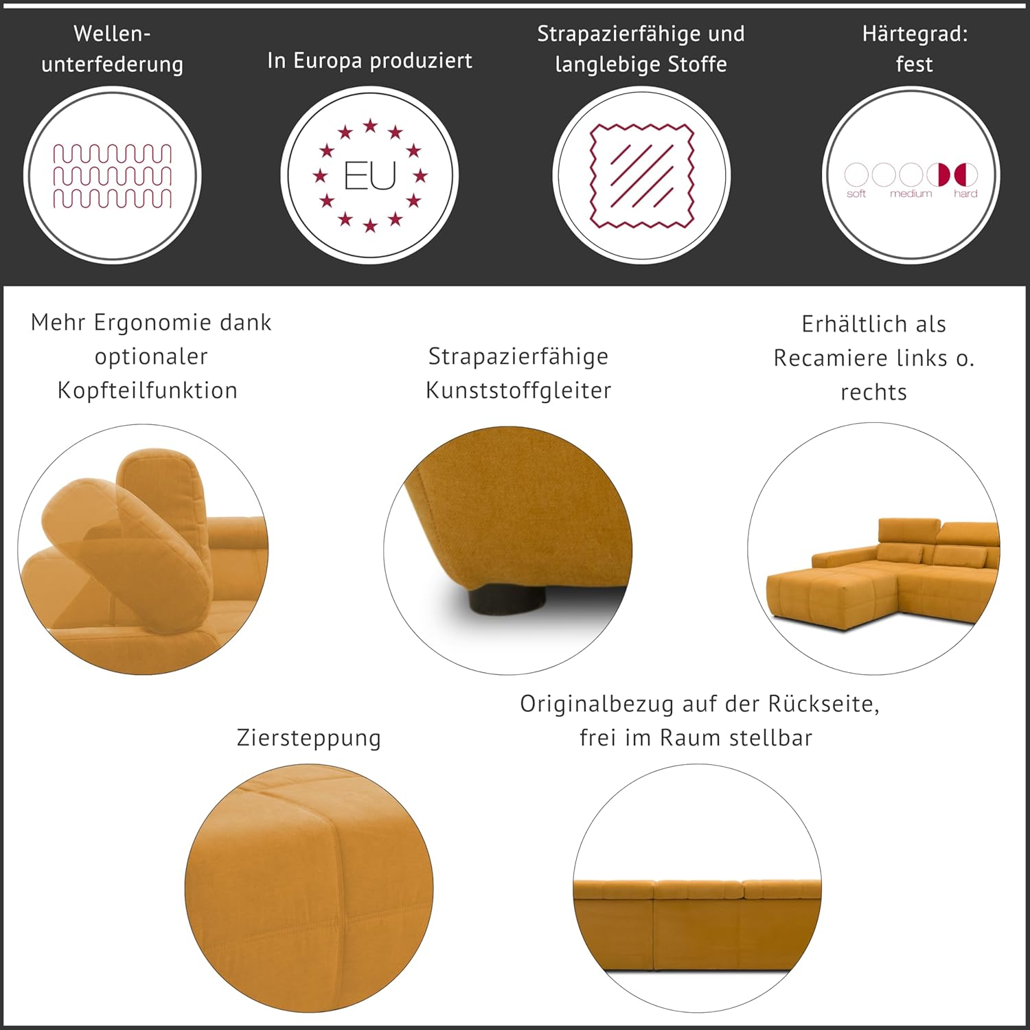 Grâce à une combinaison d’un ressort ondulé stable et d’un rembourrage en mousse de polyuréthane respirant, le modèle offre un grand confort d’assise.
