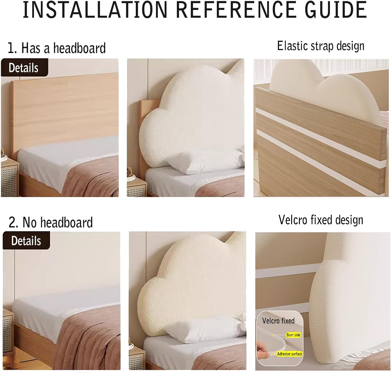 【Méthode d’installation】: Si votre lit a une tête de lit (peut être fixée à la tête du lit avec une bande élastique, antidérapante), convient à la plupart des têtes de lit ; si votre lit n’a pas de tête de lit (arrachez l’autocollant, puis fixez le coussin au mur, il peut être retiré à plusieurs reprises lors du lavage)
