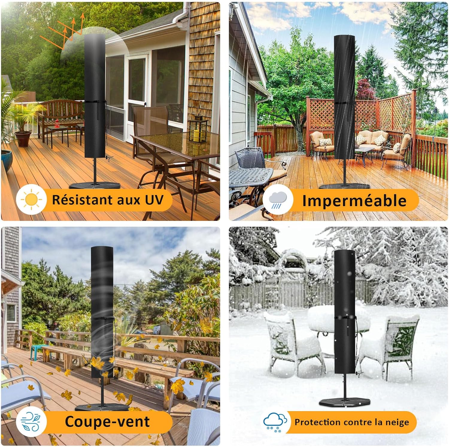 【PROTECTION ULTIME EN TOUTES CONDITIONS MÉTÉOROLOGIQUES】 – Fabriquée en polyester 420D de haute qualité et imperméable, cette housse protège votre parasol de manière fiable contre la pluie, la neige, le vent et la saleté. Prolongez la durée de vie de votre parasol !