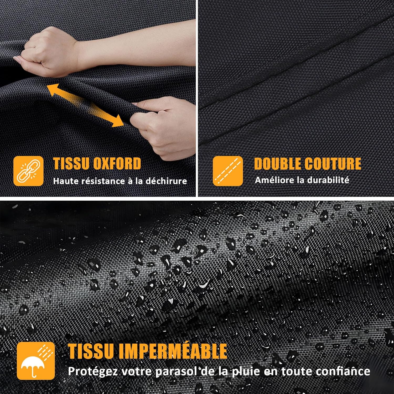 Le paquet comprend :1 x Housse pour parasol de patio,1 x petit sac de rangement