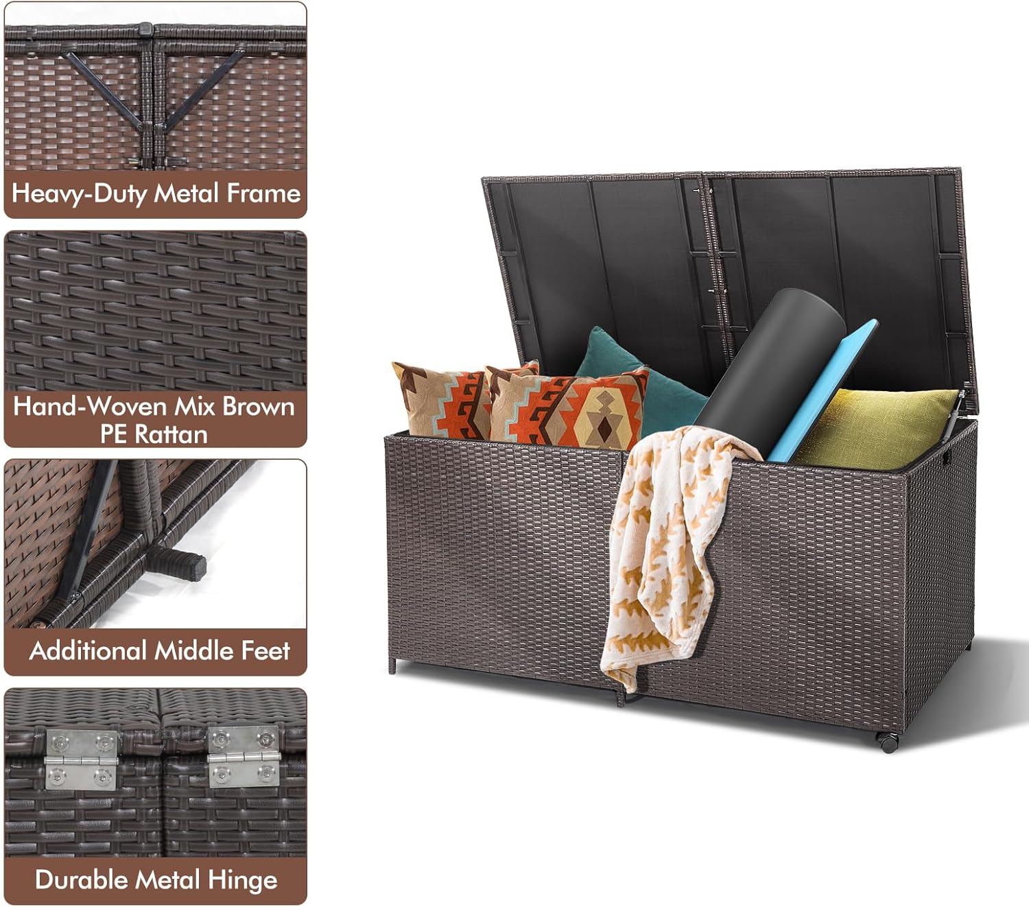 【Utilisation polyvalente】Ce meuble de jardin peut non seulement servir de coffre de rangement, mais lorsque le couvercle est fermé, il peut également être utilisé comme table basse pour un thé confortable l’après-midi ou comme tabouret repose-pieds pour détendre vos jambes.