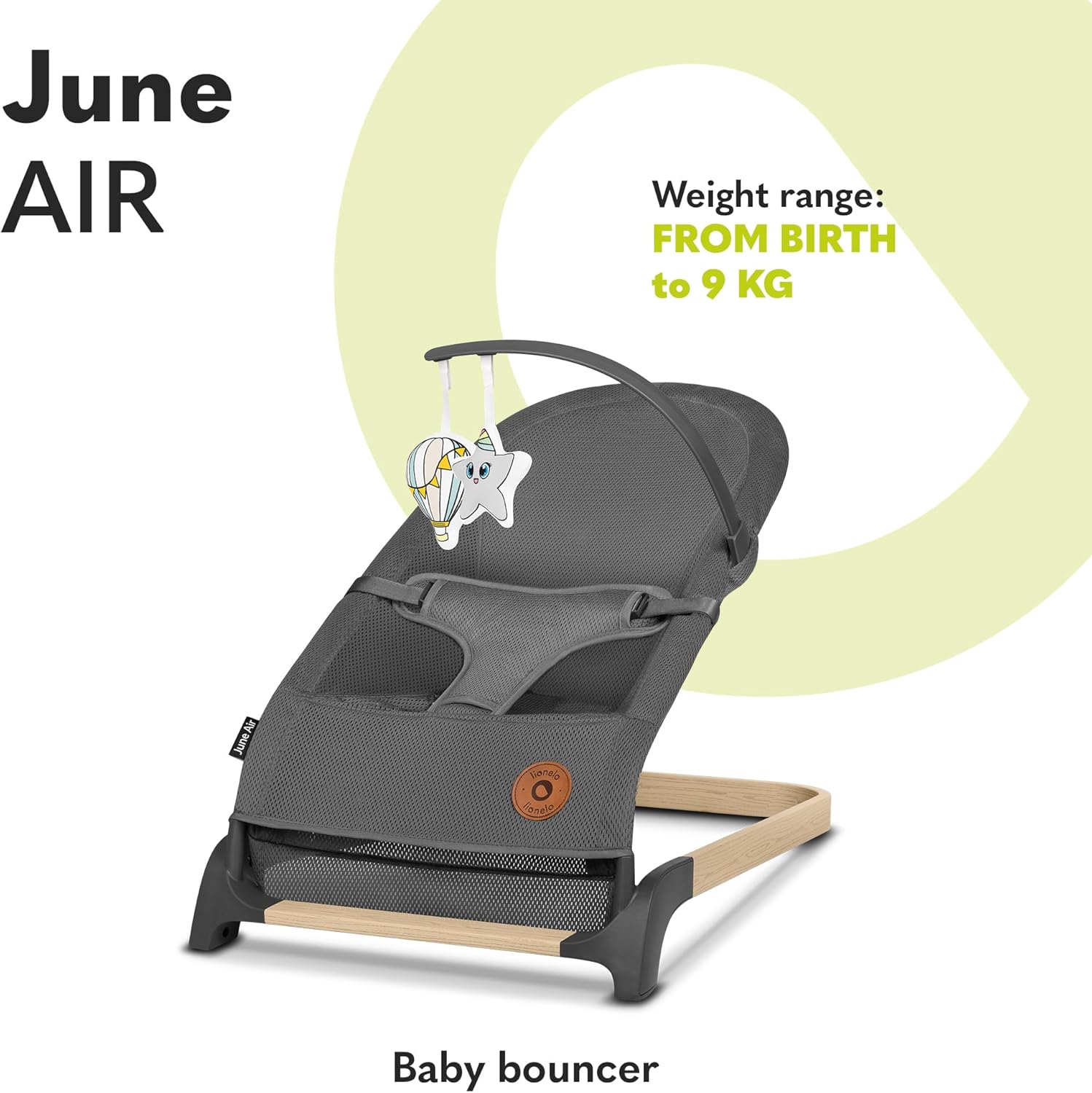 JUNE: Un transat qui imite le mouvement de balancement naturel. Il bouge grâce aux mouvements naturels du bébé, ce qui développe la conscience de son corps et la capacité à maintenir son équilibre