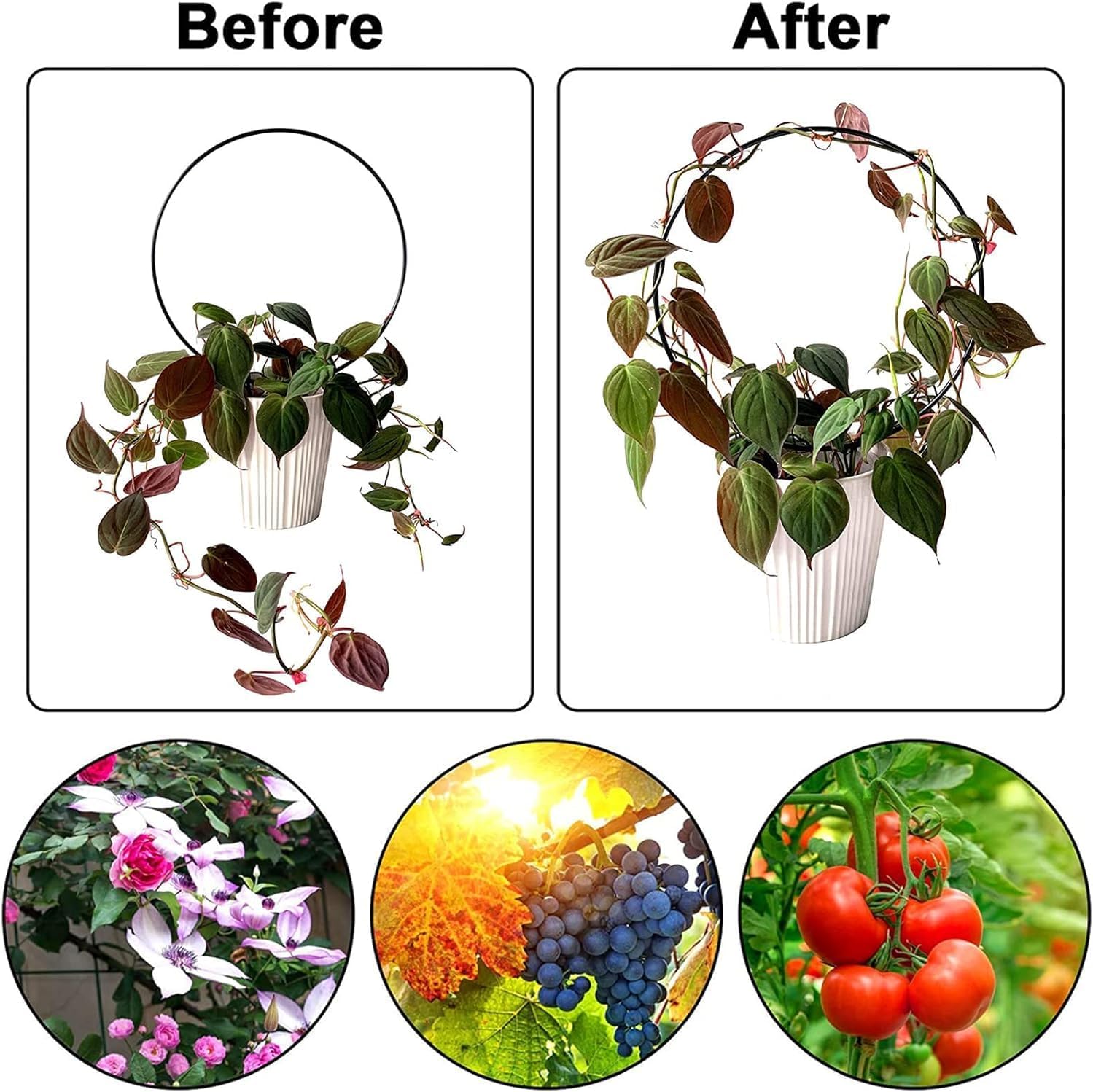 Matériau antirouille : le cadre de notre treillis rond pour plantes en pot est fabriqué en acier inoxydable robuste et recouvert d’un revêtement en plastique noir, antirouille et durable, de sorte que vous pouvez l’utiliser librement à l’intérieur et à l’extérieur pendant longtemps.