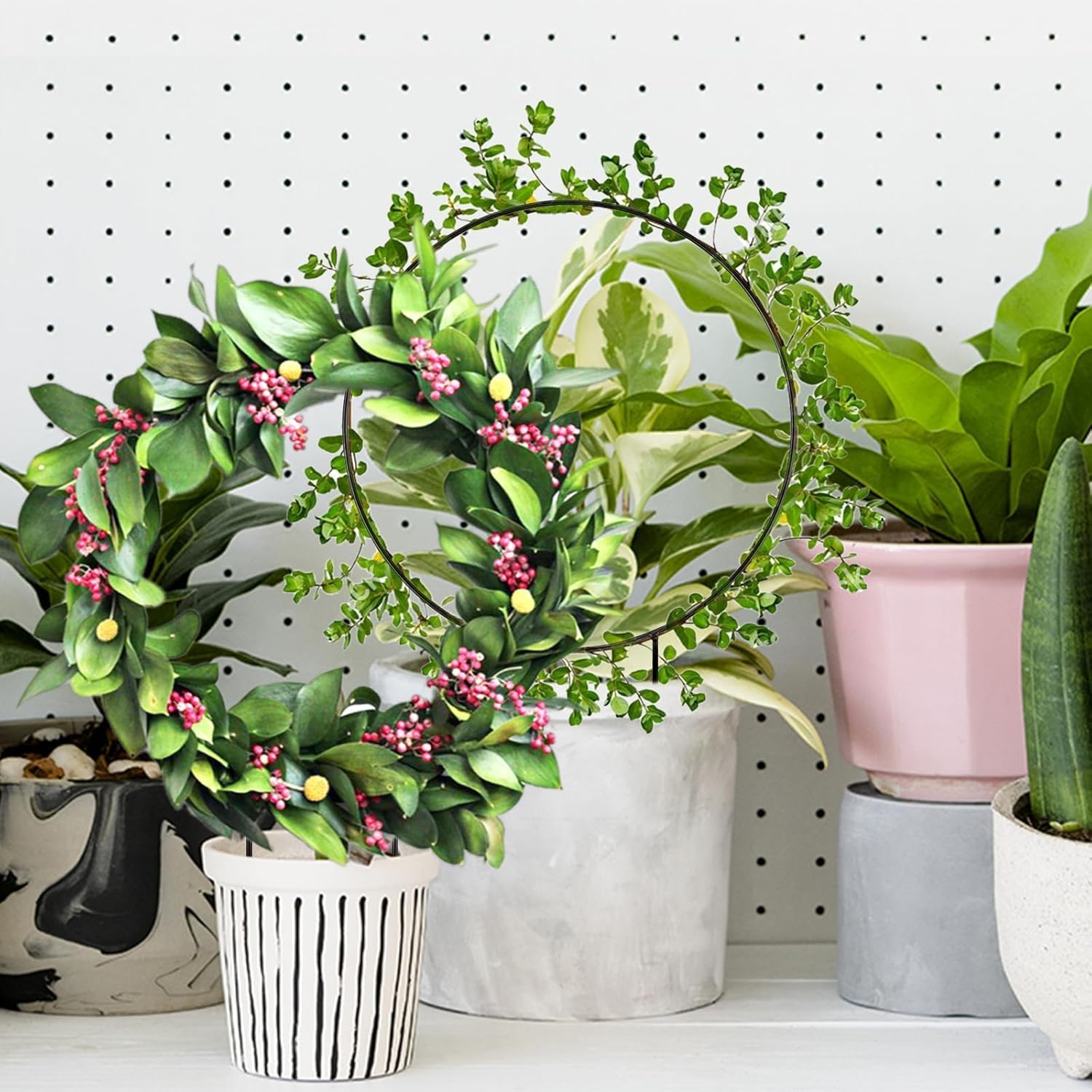 Excellent matériau : le treillis métallique d’intérieur est fabriqué en fer de haute qualité, qui ne se casse pas et ne se plie pas facilement, robuste et durable. Le treillis rond pour plantes en pot peut être utilisé à l’intérieur et à l’extérieur et soutient fermement la croissance de vos plantes en pot.