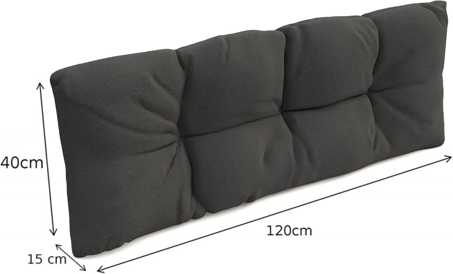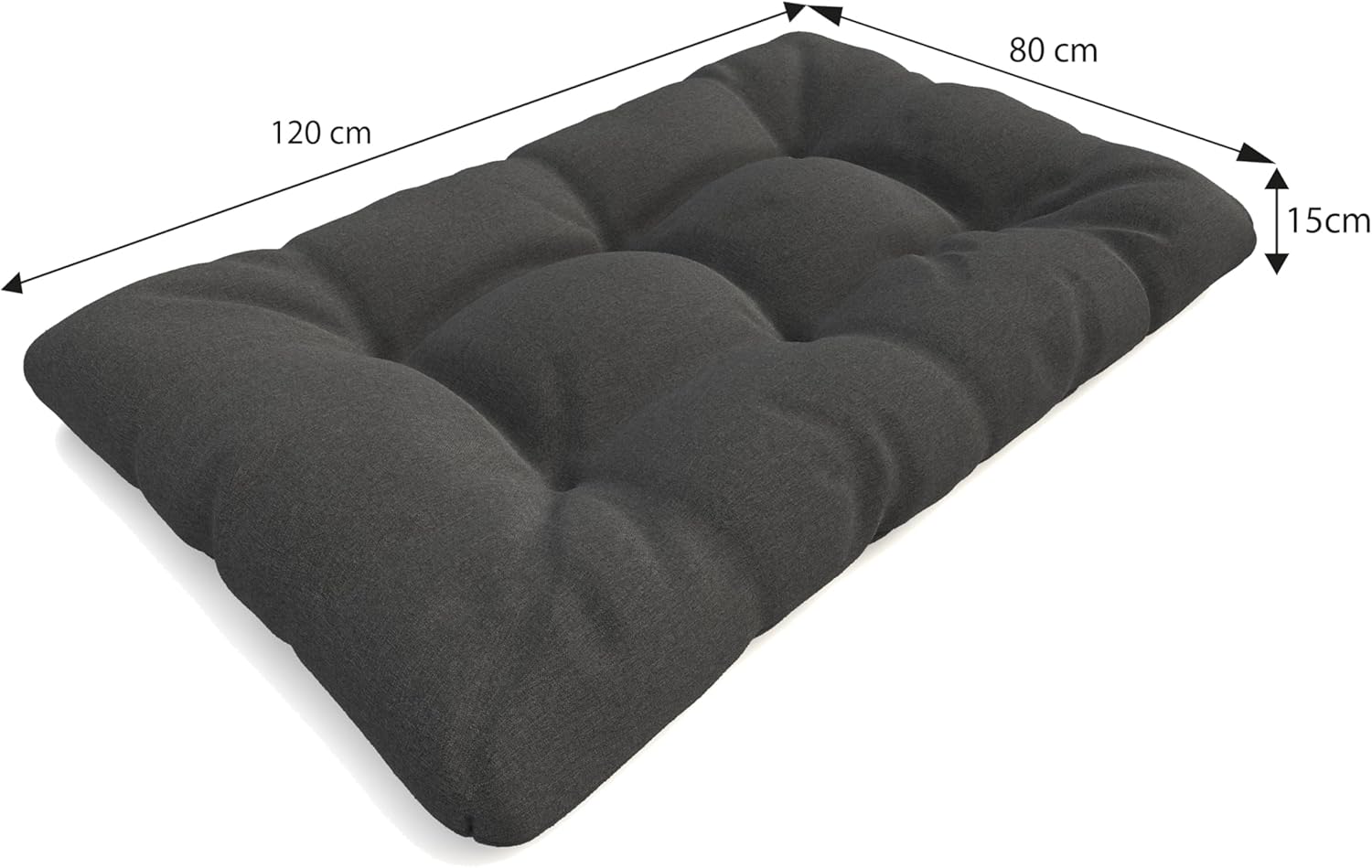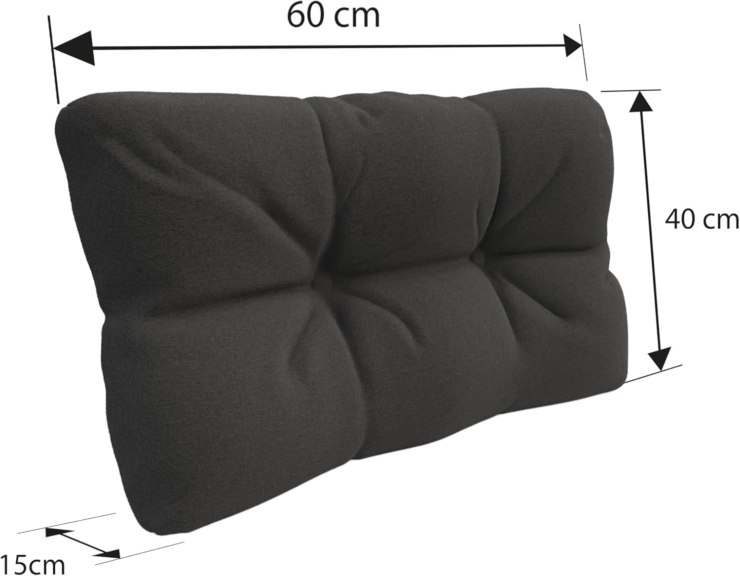 Set de 6 pièces: 2x Assise 120x80cm + 2x Dossier 120x40cm + 1x Dossier 60x40cm + 1x Coussin 40x40cm. Set de coussins, dossiers et assises confortables qui sont compatibles avec les palettes Europe. Vous achetez les coussins, les palettes ne sont pas inclues.
