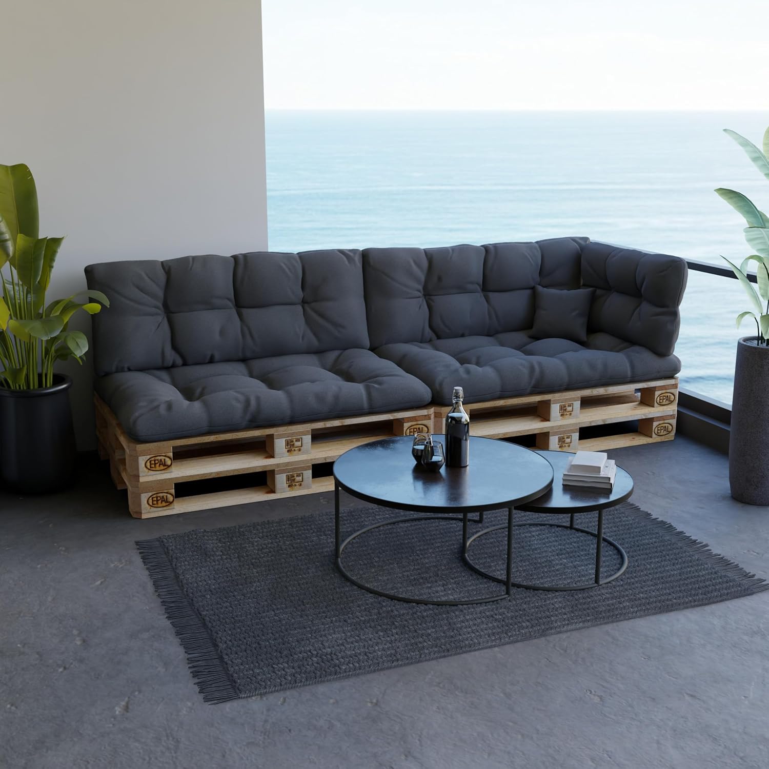 Confort et commodité, à l’intérieur et à l’extérieur: ces coussins confortables pour les palettes EUROPE vous permettront d’utiliser une palette EUROPE et la transformer en meubles confortables de jardin, de terrasse, de tonnelle, de maison, de restaurant, de café, de salle de séjour et même de bureau. Les palettes Europe transformées en meubles de jardin constituent une excellente alternative aux meubles traditionnels, comme des fauteuils ou des divans. Elles sont pleines stylées.