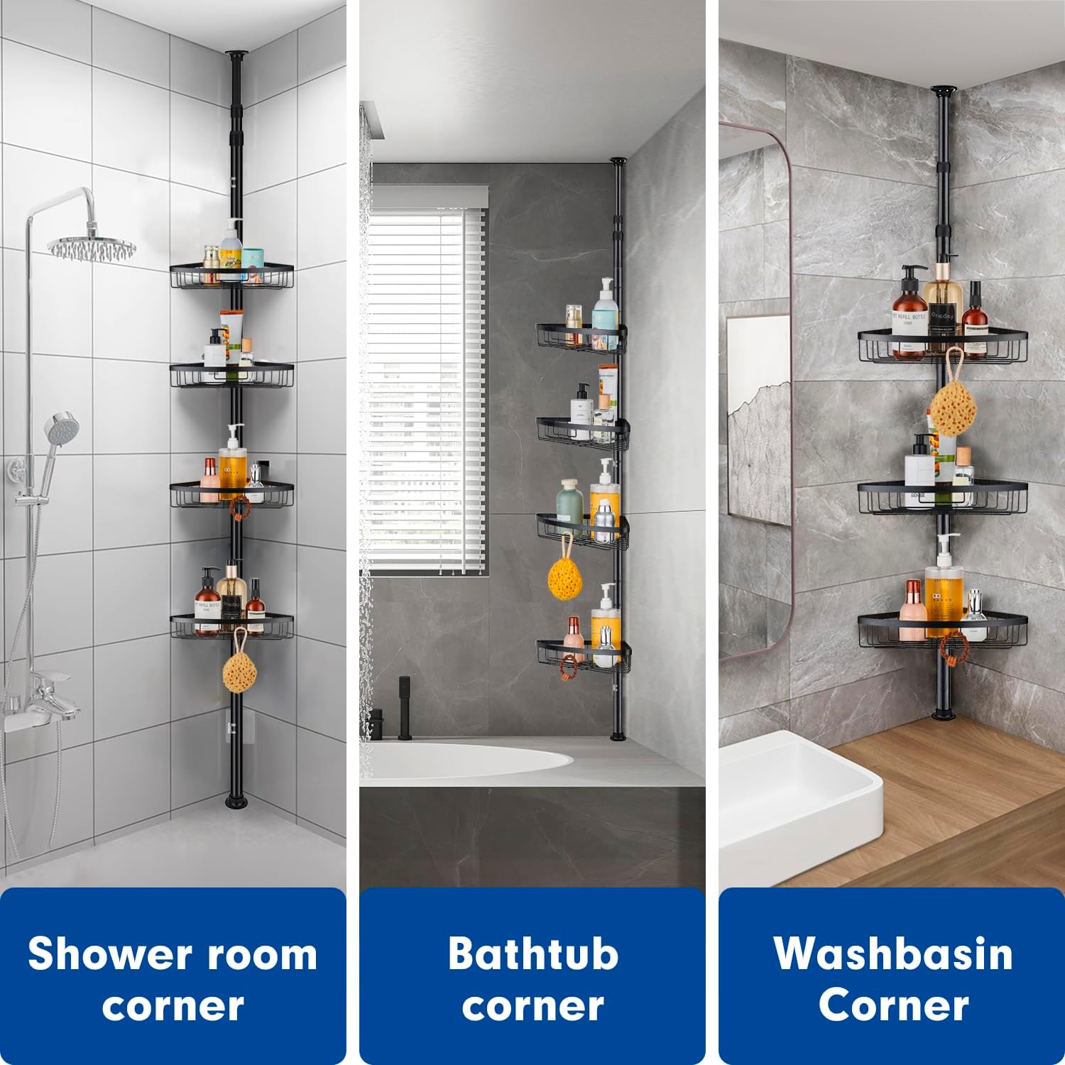【Un montage facile】Pas besoin d’outils ou de percer. Grâce aux instructions de montage claires, la tablette de douche est facile à monter et réglable en hauteur entre 73 et 302 cm. La charge statique maximale autorisée par tablette est de 3 kg.