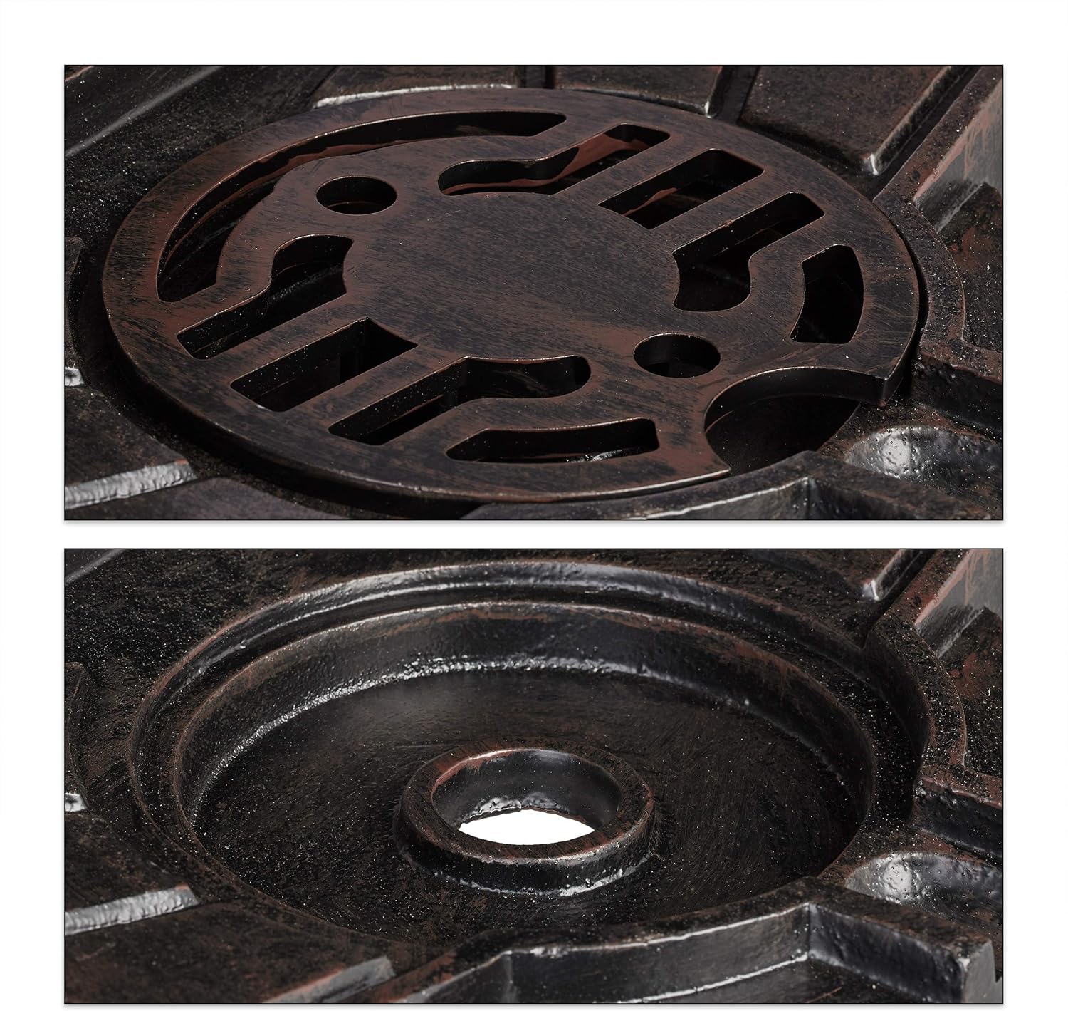 Avec cette fontaine sur pied de conception antique donnez à votre jardin ou votre terrasse ce charme nostalgique Cette fontaine convient toujours comme décoration ou pour se laver les mains après le jardinage ou pour l’arrosage de votre potager surélevé La fontaine sur pied est muni d’un petit robinet et d’un bassin en rondeur. Le grillage est idéal pour poser des arrosoirs, des pots à fleurs ou autres objets. Si nécessaire fermez l’évier à l’aide d’un bouchon de sorte que l’eau ne coule. Détails des fontaines sur pied XXL – Dimensions totales H x L x P: env. 100 x 38 x 47 cm – Poids : env. 15,6 kg – Matériel Aluminium-fonte – Couleur : brun foncé, or Caractéristiques de la fontaine sur piliers Hauteur du robinet : env. 74 cm – Diamètre intérieur du bassin: 16 cm – Profondeur du bassin: 2 cm – Dimensions l x P: env. 11,5 x 11,5 cm Colonne d’eau nostalgique – Idéal pour jardin et terrasse – Avec robinet et petit bassin – Avec grille pour déposer les arrosoirs – Design nostalgie qui respire le charme d’antan – Structure ouverte avec raccordement à l’eau par l’arrière Contenu de la livraison 1 Fontaine de jardin en pièces détachées – Instructions sur montage – Livré sans objets de décoration