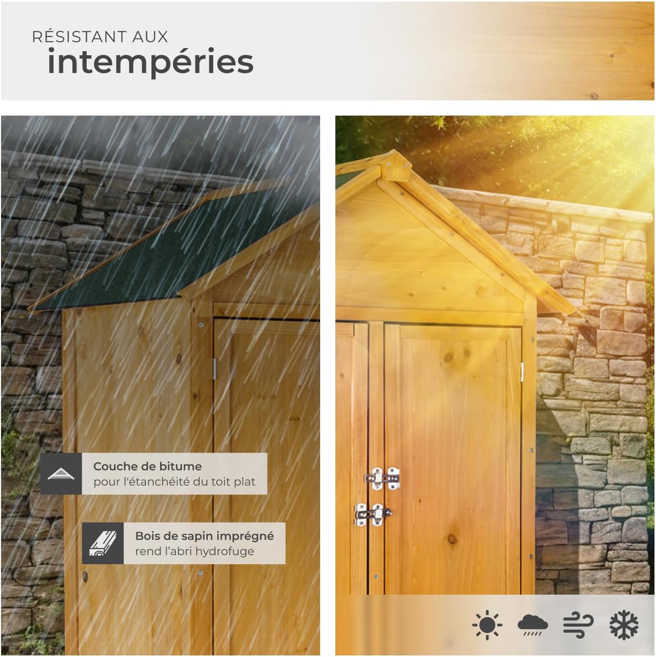 DURABILITÉ EXCEPTIONNELLE : Vous recherchez une solution durable pour votre jardin ? Notre abri de jardin est fabriqué avec du bois de pin imprégné et un toit en pente couvert de bitume, assurant une résistance impeccable aux intempéries. Parfait pour garder vos outils et équipements de jardin au sec et en sécurité, année après année, tout comme un coffre de rangement exterieur.