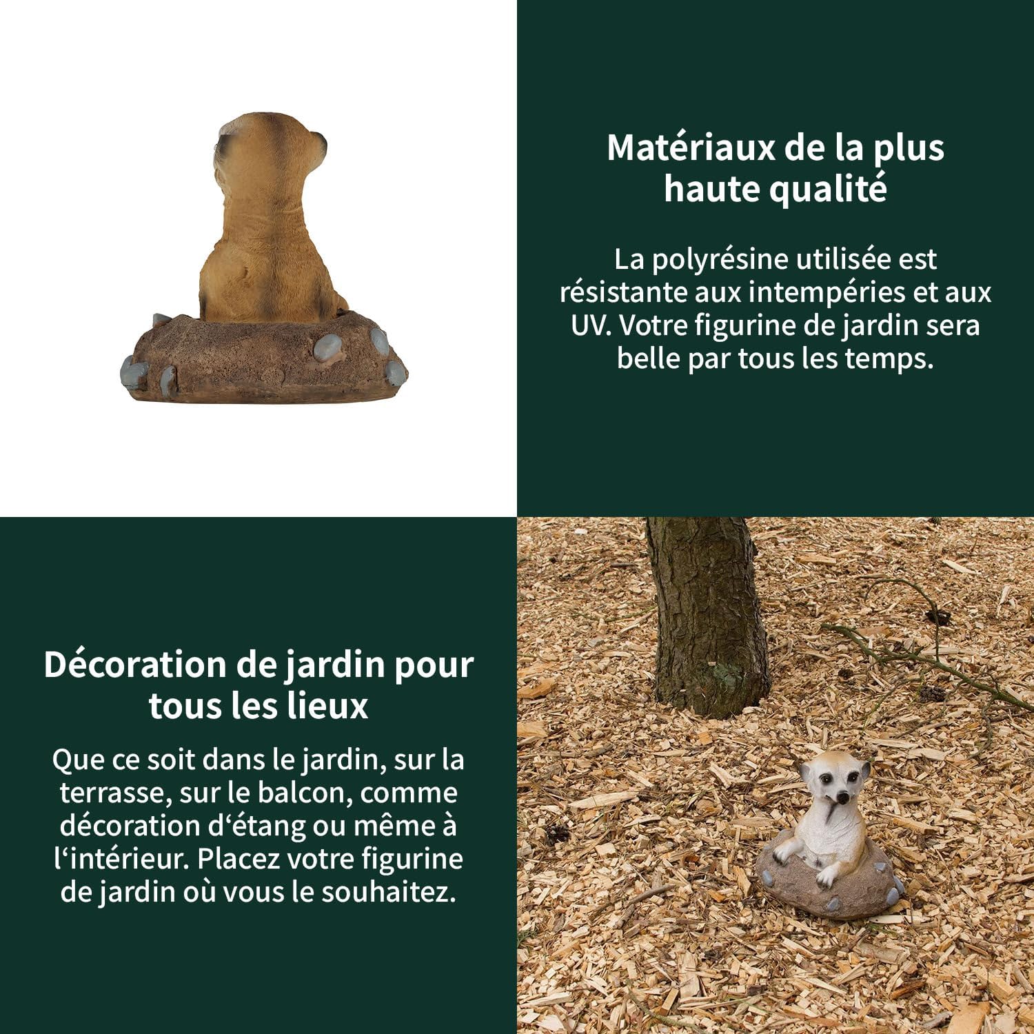 FIGURINE SURICAT PEINT À LA MAIN : Chaque figurine de jardin est soigneusement peinte à la main. Elles sont idéales comme figurines de jardin pour l’extérieur. La reproduction détaillée est à s’y méprendre similaire aux vrais animaux.