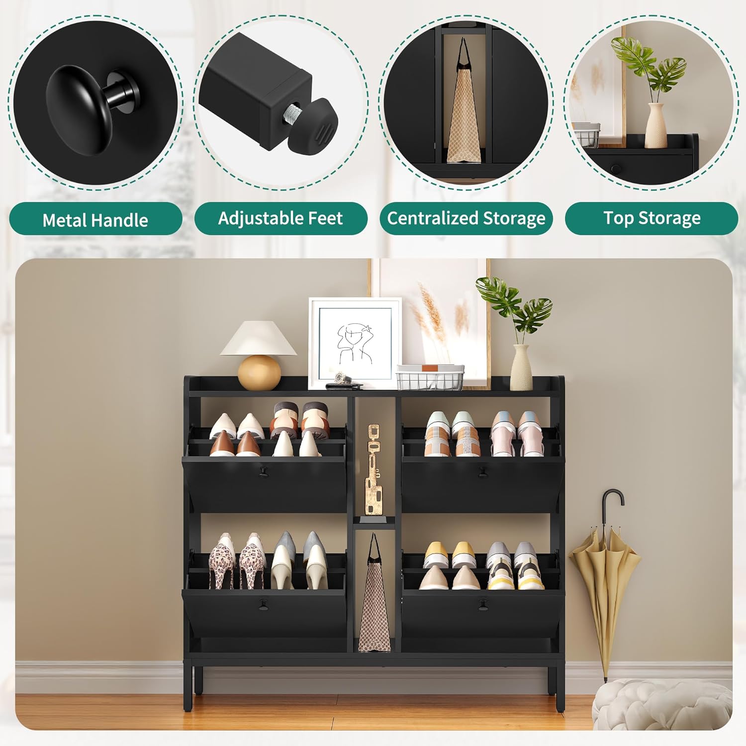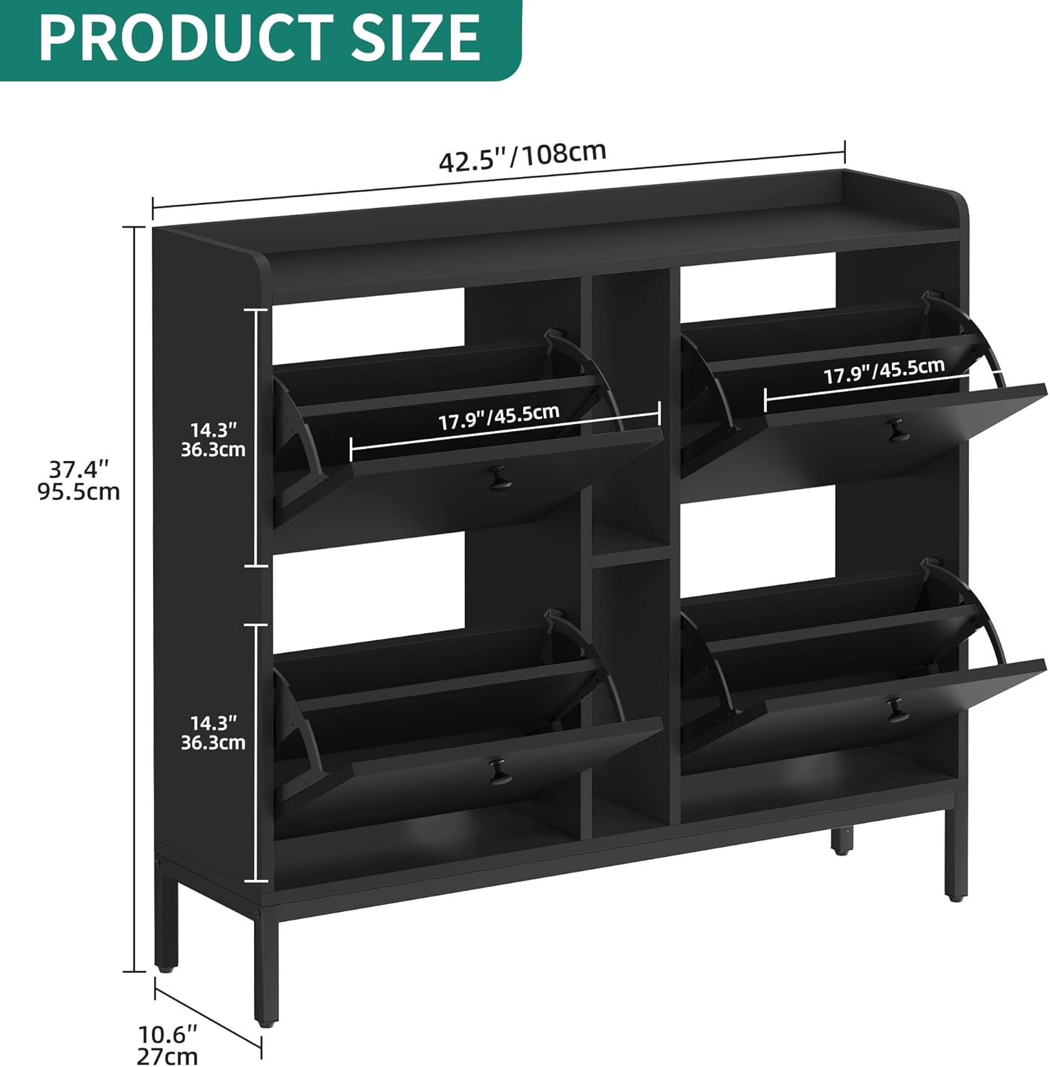 Rangement à chaussures pour chaque paire : équipé de 4 tiroirs pliables et d’étagères de séparation réglables, cette armoire à chaussures peut contenir jusqu’à 16 paires de pantoufles aux talons hauts. Le compartiment ouvert intégré à 2 étages est idéal pour les plantes vertes ou les objets du quotidien et garde tout à portée de main.