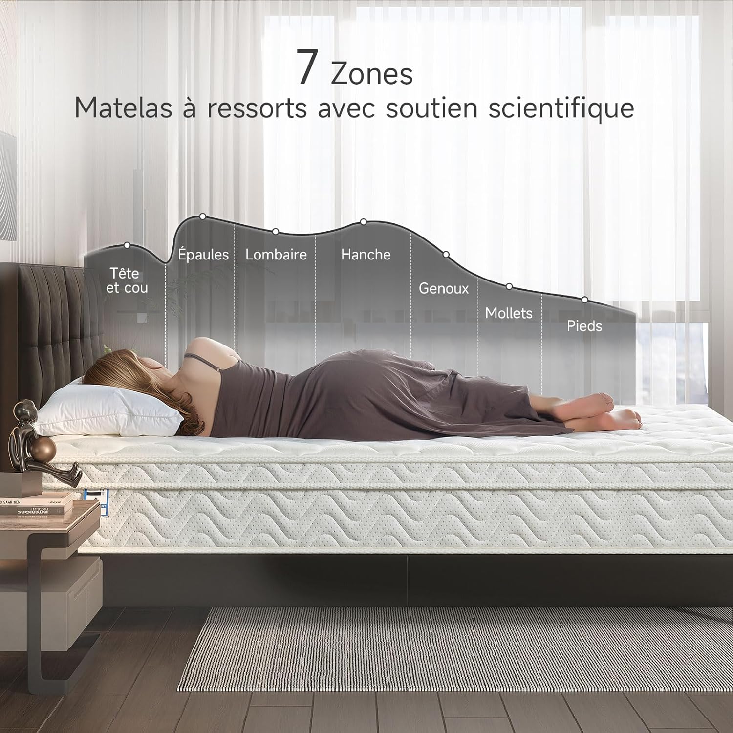 Isolation Des Mouvements : Des centaines de ressorts ensachés travaillent indépendamment pour absorber plus de 90% du bruit et des vibrations, réduisant efficacement le transfert des mouvements de votre partenaire ou de votre animal de compagnie.