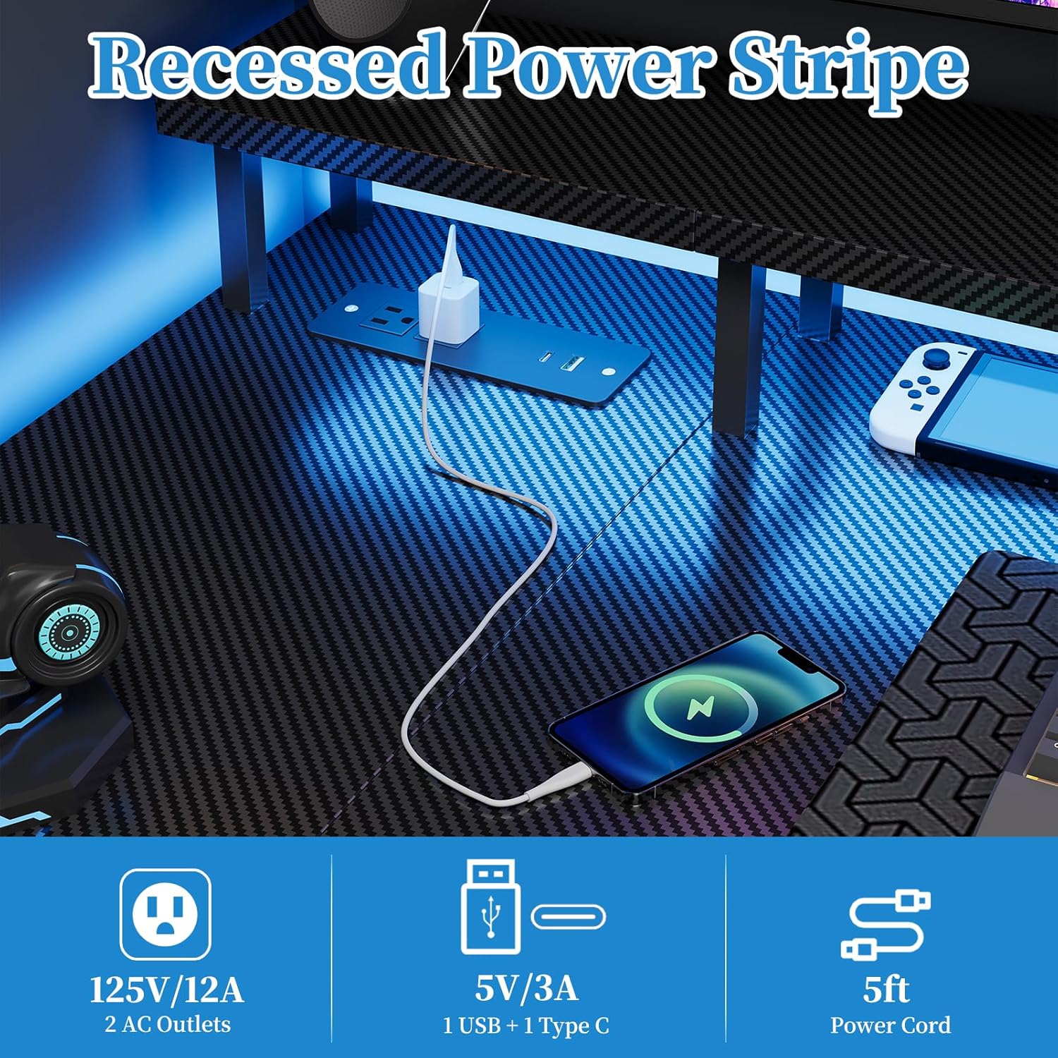 Design moderne avec prises intégrées : Le bureau L de Grandder est équipé d’une surface en fibre de carbone et d’une planche MDF haute résistance, avec des prises multifonctionnelles intégrées : 2 prises AC, 1 port USB, 1 port Type-C et un câble d’alimentation de 1,5 m.
