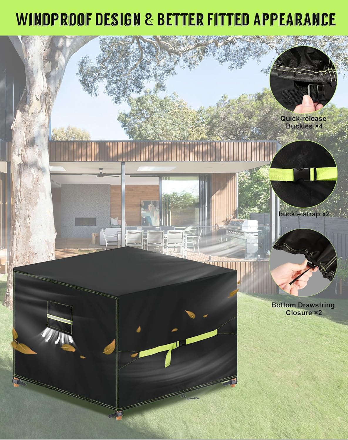 【Tailles Multiples Disponibles】135x135x75cm(longueur x largeur x hauteur), Convient à de nombreux types de tables et ensembles de chaises carrés, rectangulaires ou ovales pour intérieur/extérieur, ensembles de meubles de jardin en rotin, tables basses, ensembles de canapés et objets de taille similaire. Nous avons différentes tailles de housses de meubles pour répondre à vos besoins, veuillez mesurer les dimensions de votre ensemble de meubles avant d’acheter.