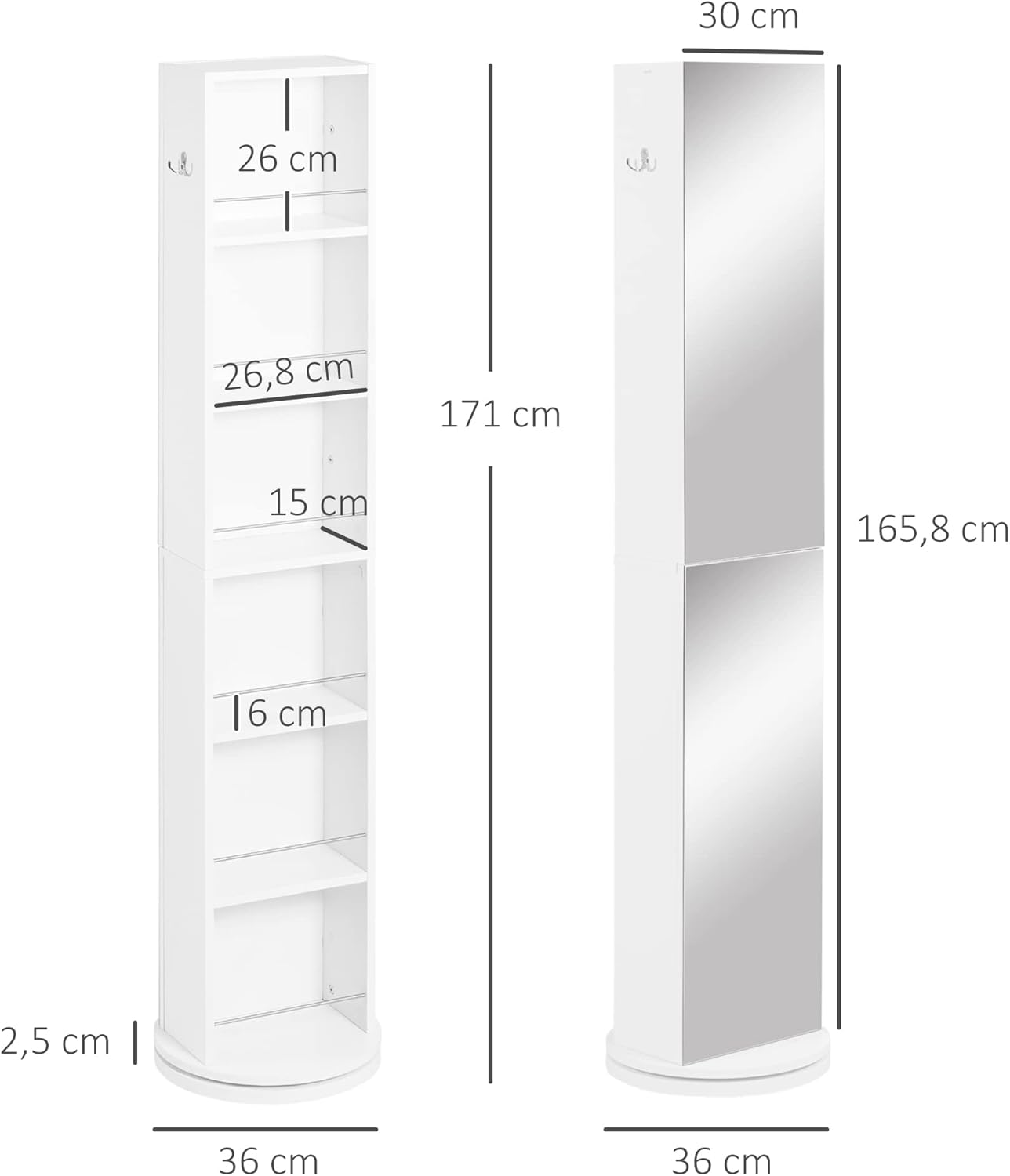 COLONNE PIVOTANTE À 360° : La partie inférieure est dotée d’un axe rotatif à 360°, ce qui vous permet d’ajuster l’angle en fonction de vos besoins. Meuble de rangement pour salle de bain idéal pour les petits espaces ! Meuble 2 en 1, très pratique, en un seul meuble, vous disposez d’un grand miroir et de rangement.