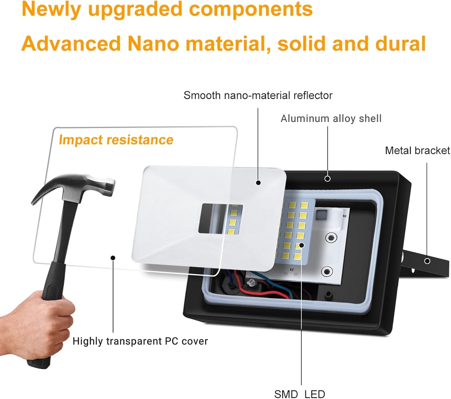 Super lumineux et économe en énergie: ce MEIKEE projecteur led extérieur 35W utilise des puces LED à haute efficacité lumineuse et la technologie SMD avancée pour fournir une lumière blanche froide de 6500K avec un éclairage de 3000 lumens. 35W spot led extérieur peut remplacer les lampes à incandescence traditionnelles de 300W et vous faire économiser 85% sur vos factures d’électricité