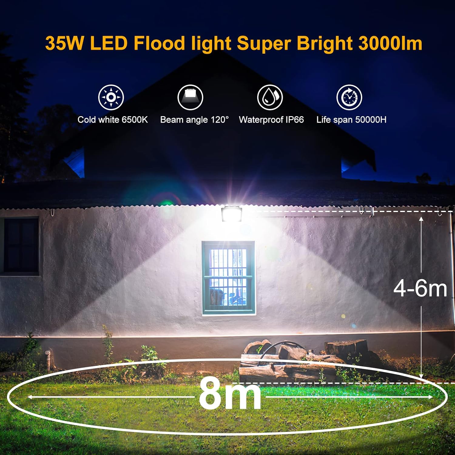 Nombreux lieux d’application: l’angle du faisceau est de 120° et la distance d’éclairage est de 10 à 12 mètres, apportant une large plage d’illumination. Le projecteur LED de la lumière blanche froide de 35W convient à l’éclairage de garages, cours, portes, terrasses, entrepôts, ateliers, tribunaux, places, piscines, chemin, chantiers de construction ou autres grands espaces intérieurs et extérieurs