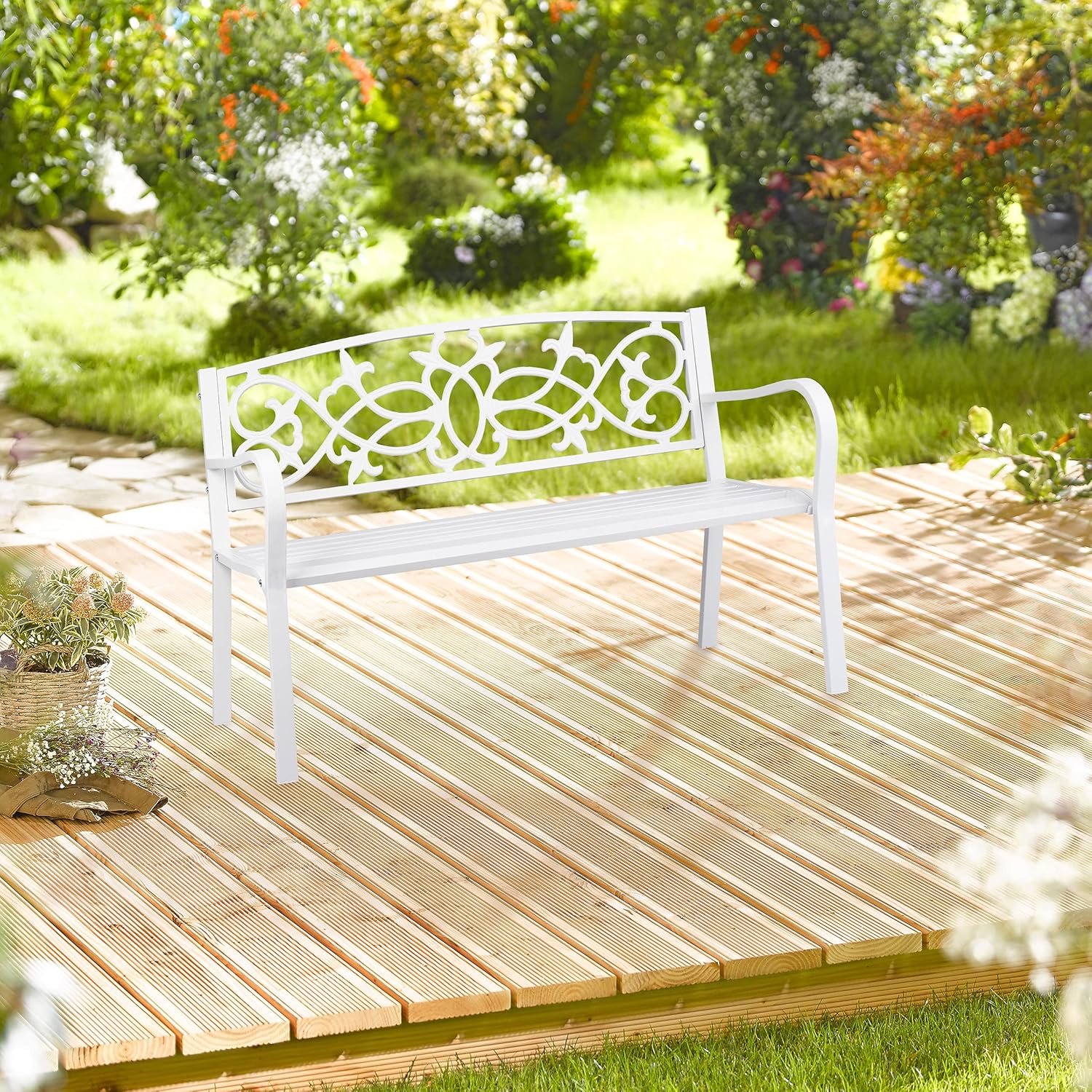 Romantique: Banc blanc confortable pour 2 personnes avec ornements nostalgiques sur le dossier