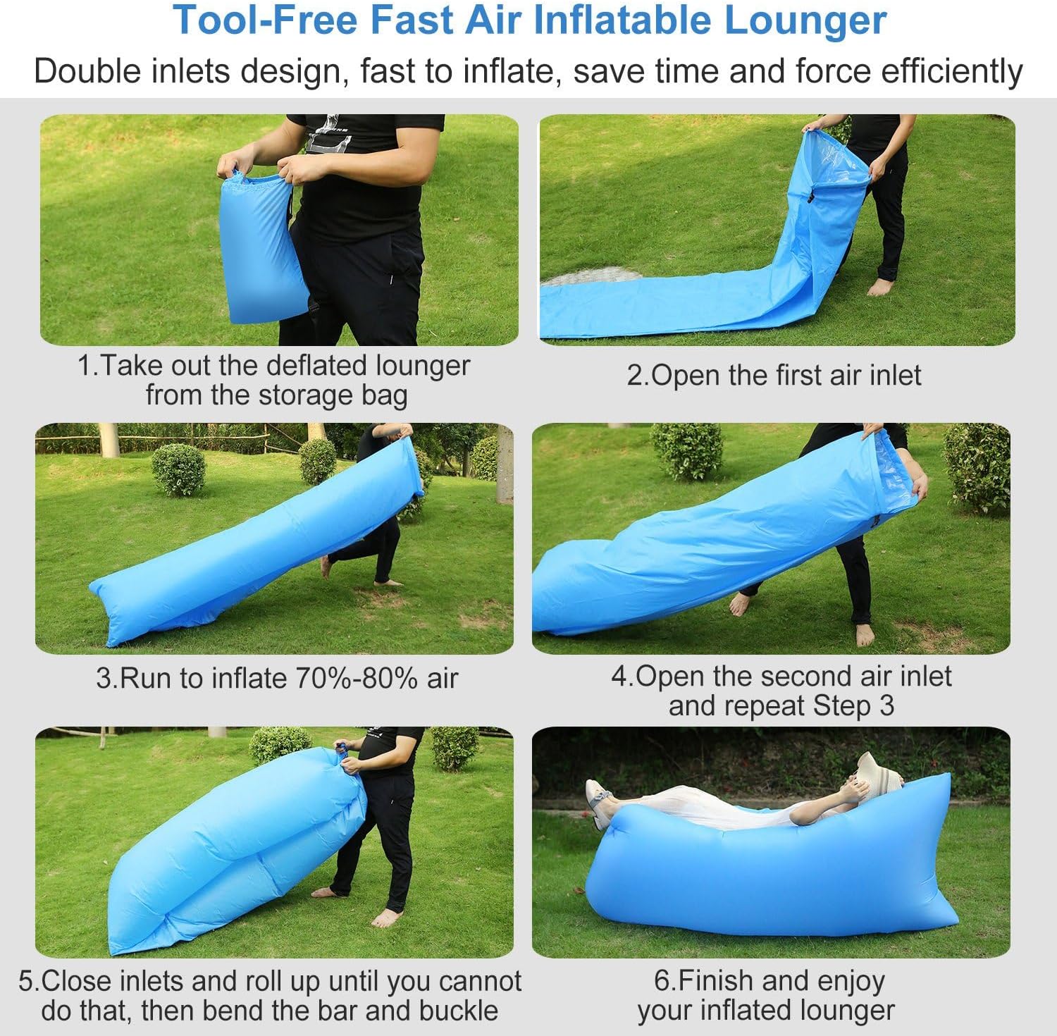 【Facile à gonfler】Secoue simplement le transat gonflable plage avec la force de la nature dans le vent et il se gonflera en quelques secondes.