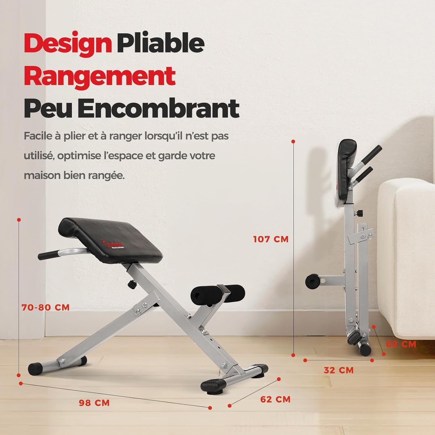【PLIAGE FACILE À RANGER】Envie de sport mais peu d’espace ? La chaise romaine Sunny Health & Fitness se plie presque à plat pour un rangement simple et pratique. Convient aux débutants comme aux sportifs avancés.