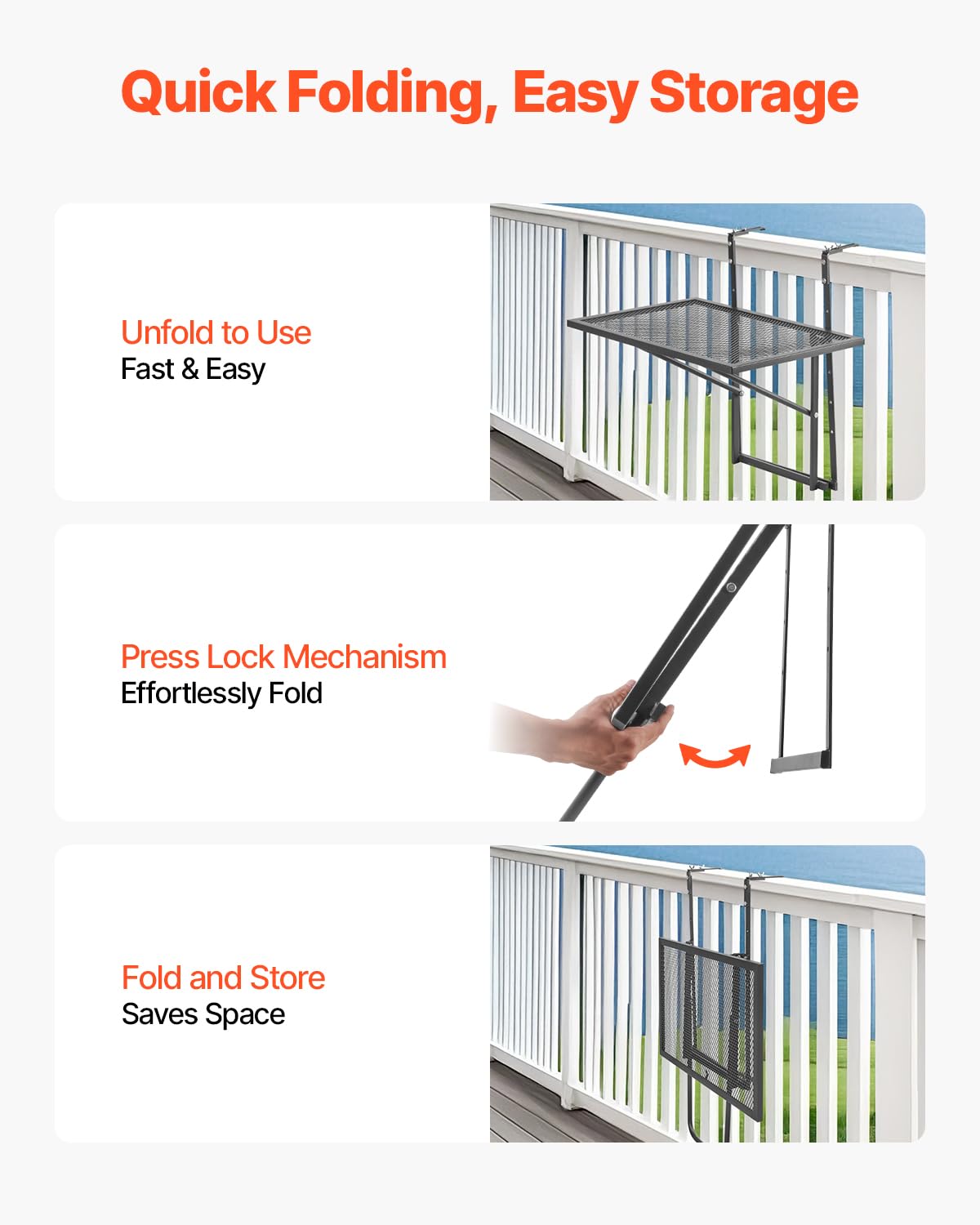 Durable et résistant aux intempéries : Fabriquée en acier inoxydable de qualité supérieure et recouverte d’une peinture de haute qualité, cette table de balustrade de balcon est très résistante à la rouille et à la corrosion. Conçue pour résister aux éléments, elle est parfaite pour une utilisation extérieure à long terme dans toutes les conditions météorologiques