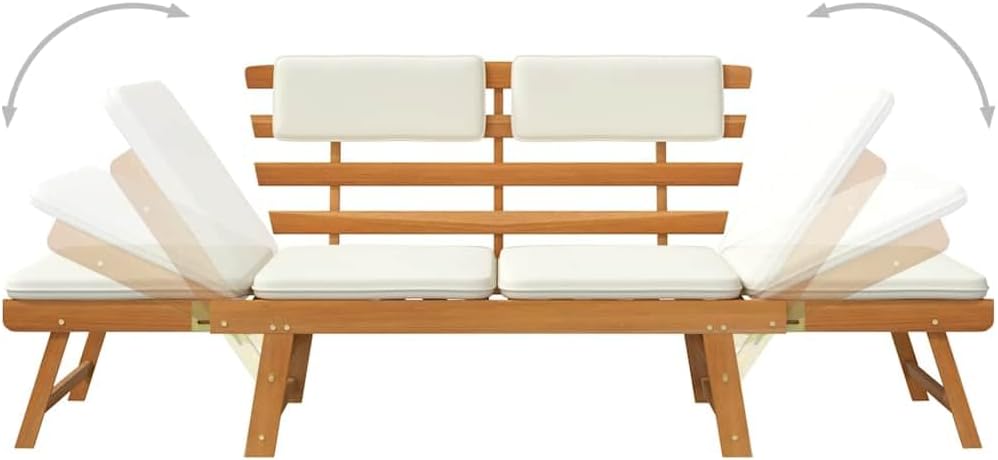 【Bois d’acacia massif :】 le lit de bronzage / banc de jardin est fabriqué en bois d’acacia, un bois tropical, qui est résistant aux intempéries et et fini avec une couche en huile légère. Par conséquent, il est approprié pour une utilisation à l’extérieur.