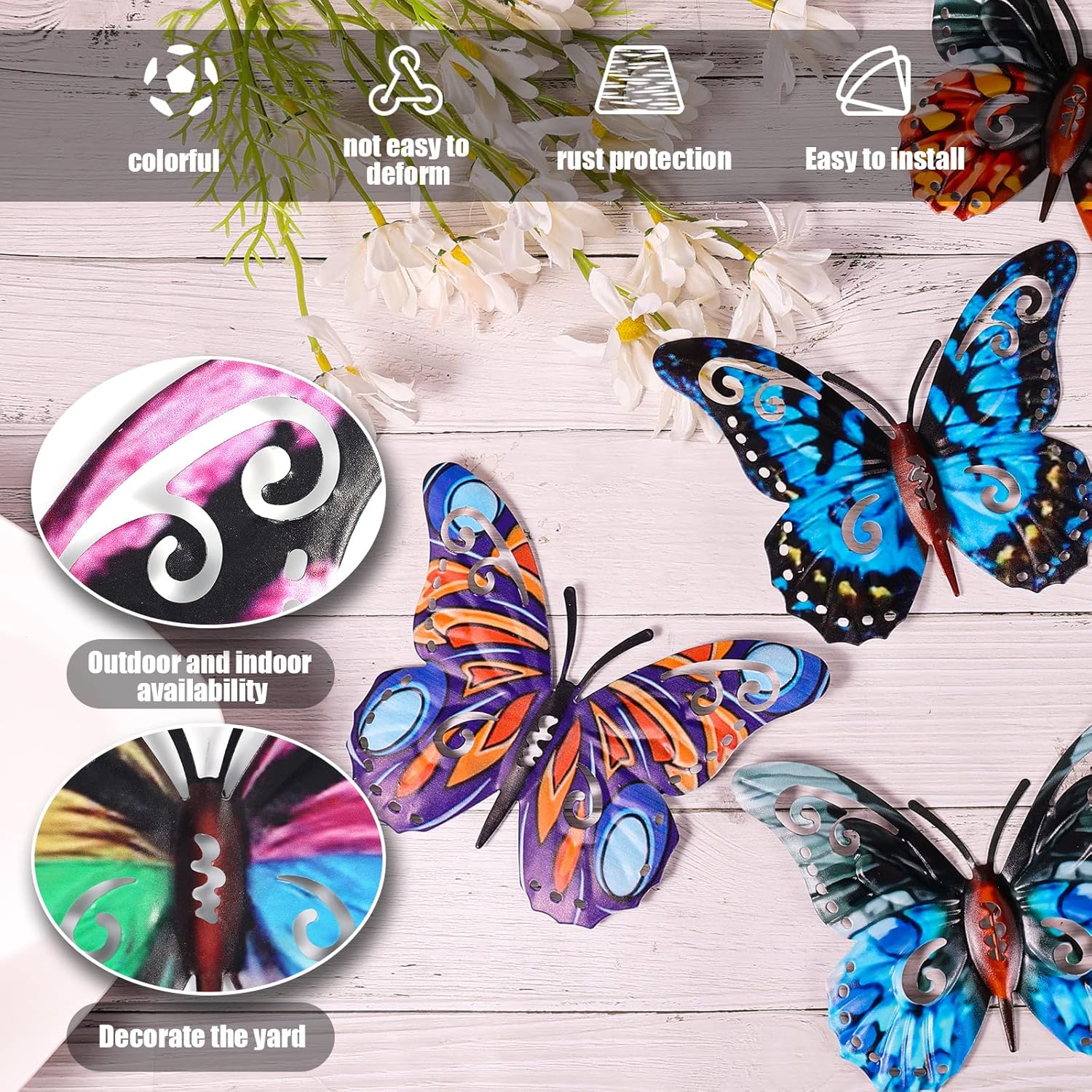 Application large: Notre décoration murale de papillons est parfaite pour décorer des chambres, des salons, des jardins, des patios, des yards, des clôtures et d’autres endroits que vous souhaitez décorer.