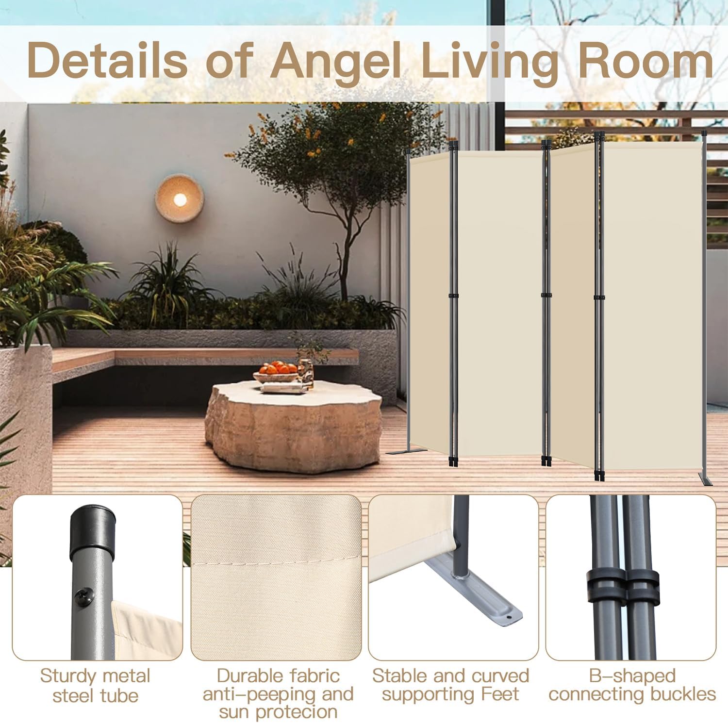 【Bon matériel】Cela offre une intimité idéale pour l’intérieur ou l’extérieur.Vous pouvez facilement retirer et nettoyer le tissu de l’écran pour enlever la saleté. Vous pouvez également le repasser à la vapeur pour défroisser le tissu.