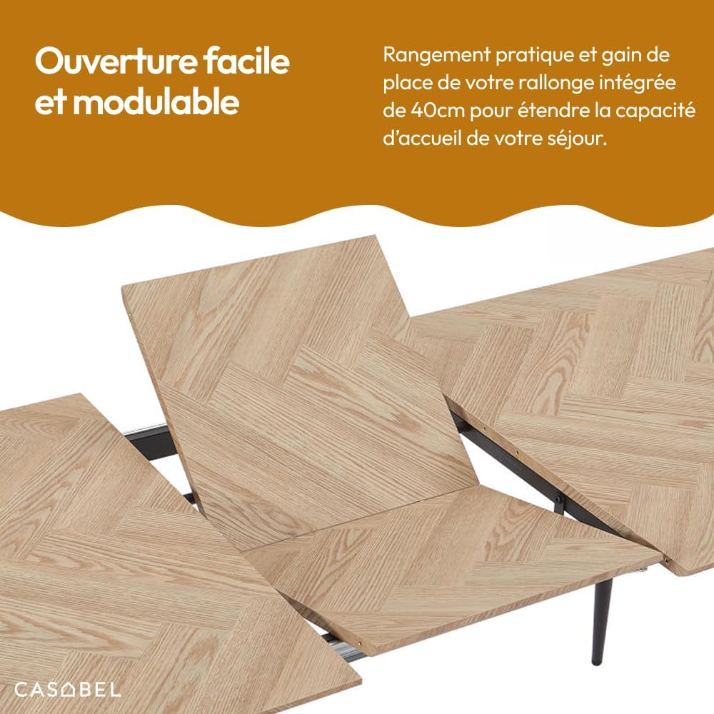 Surface Spacieuse : La table à manger extensible parisienne Casabel offre un généreux plateau de 160-200 cm de longueur, idéal pour accueillir confortablement de 6 à 10 convives, favorisant ainsi des moments conviviaux et mémorables.
