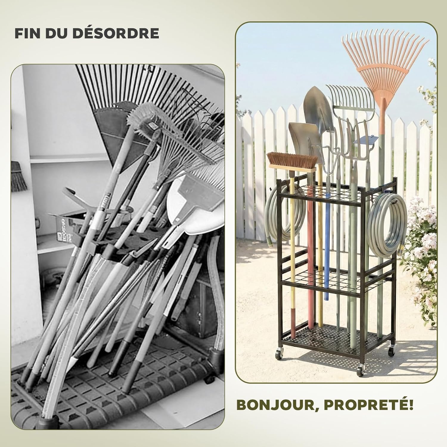 Chariot de rangement 3 niveaux polyvalent, parfait pour les outils de jardin, ustensiles de cuisine, accessoires ou vases