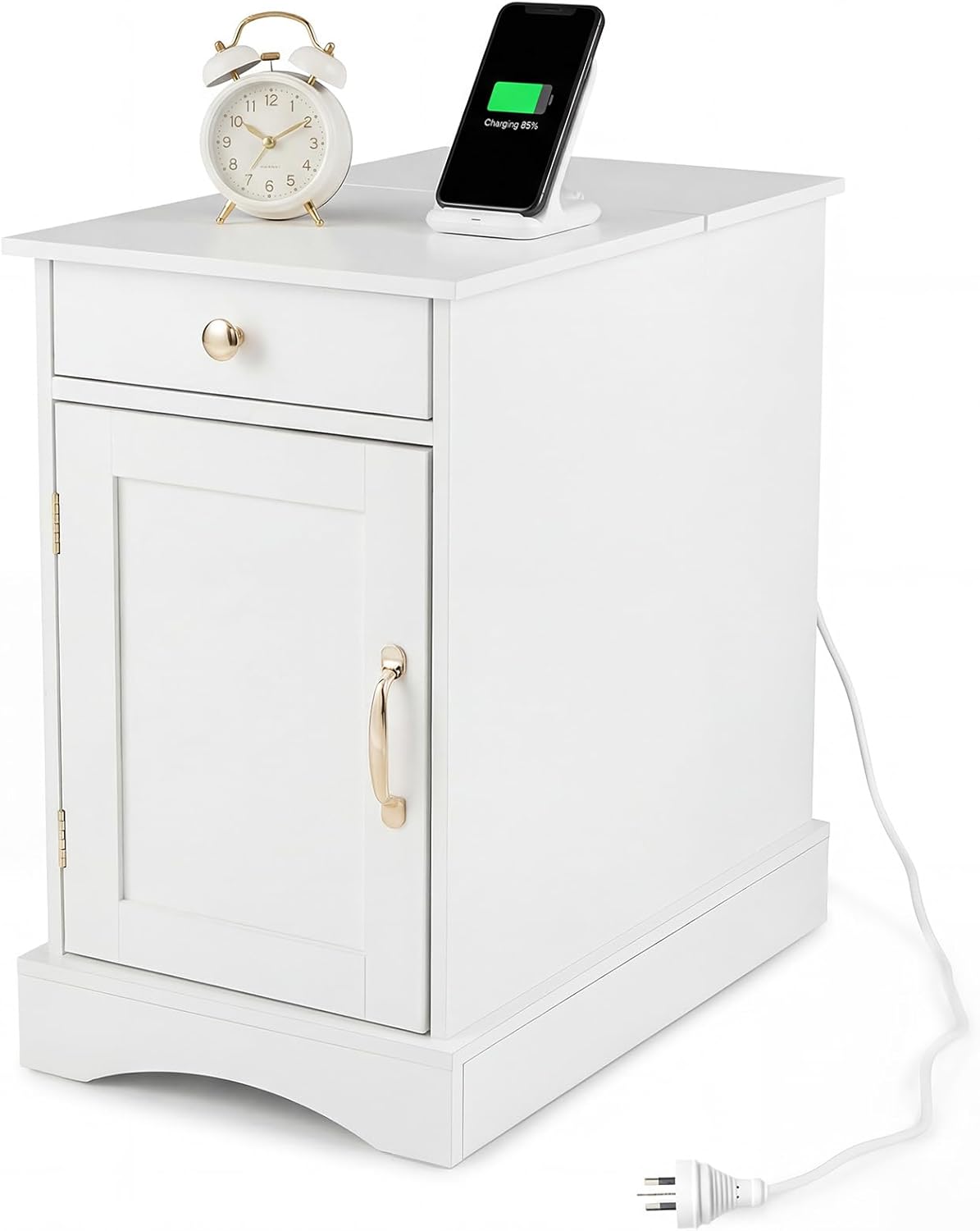 【Prise de Courant Intégrée】 Cette table de nuit est dotée d’une prise de courant cachée intégrée, accessible en ouvrant le couvercle supérieur. Elle comporte 2 prises AC, 1 port USB-A et 1 port USB-C, ce qui facilite grandement la charge de vos appareils et vos préparatifs.