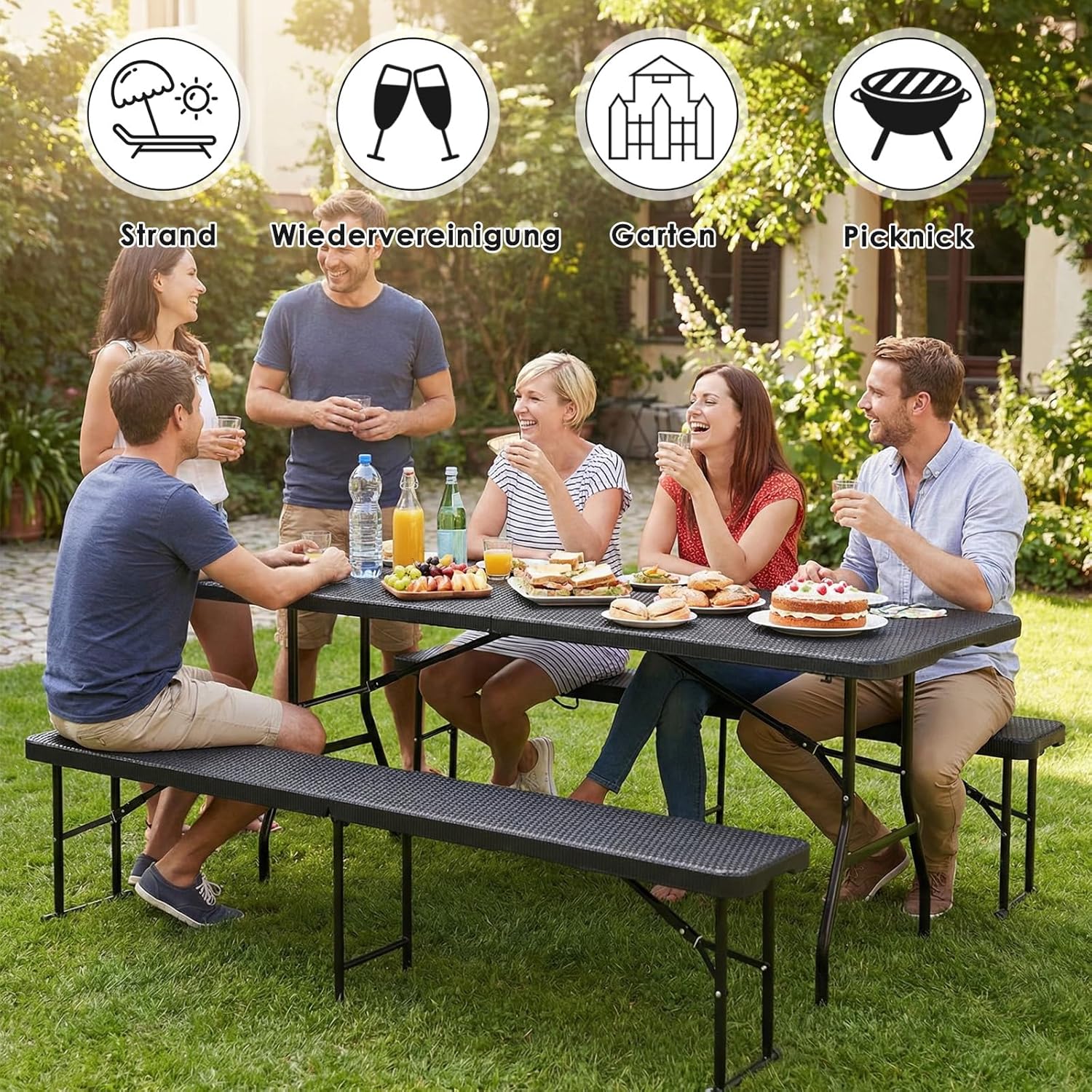 Multifonction : le Ensemble Meubles Pliante peut être utilisé comme fête dans le jardin, fête d’anniversaire d’enfant ou événement de marché aux puces, ou comme meuble d’appoint à la maison, dans le jardin, au camping ou d’autres événements. Le Ensemble Meubles de Jardin est adapté pour les anniversaires, les fêtes, les barbecues.
