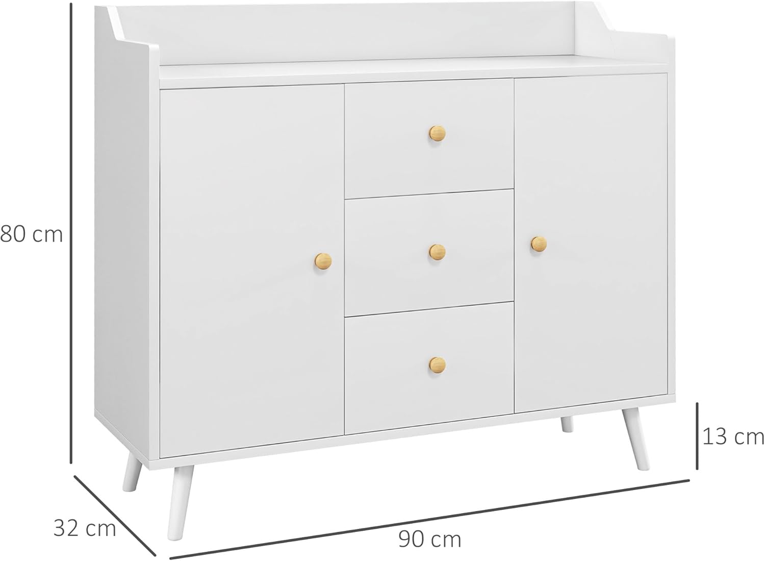 GRAND ESPACE DE RANGEMENT : Ce buffet dispose de 3 tiroirs profonds et de 2 grands placards, parfaits pour organiser la cuisine ou la salle à manger. Rangez la vaisselle, les casseroles et placez une cafetière sur le dessus sécurisé aux bords surélevés