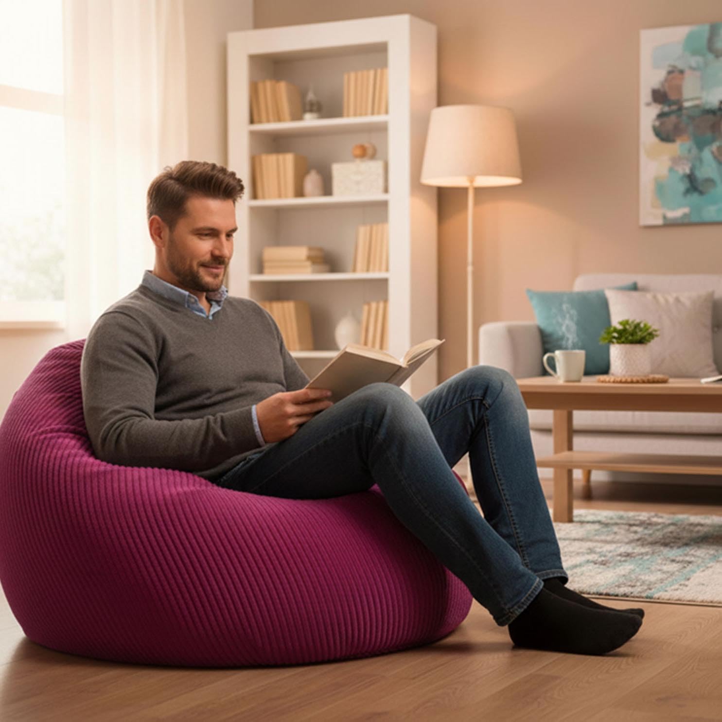 Oublie les canapés rigides. Ce pouf poire velours côtelé épouse parfaitement ton corps pour des heures de lecture sans tension. Lumière tamisée, livre ou tablette en main, et le confort absolu. Qualité premium exclusive Europe, billes polystyrène supérieures + sécurité M1. Le meuble qui devient ton rituel préféré du soir.