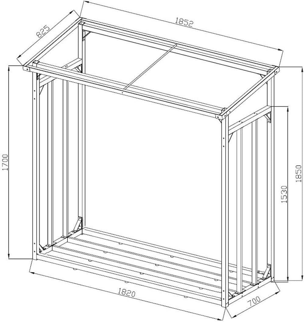 Dimensions L / L / H: 185x70x185cm, hauteur devant environ 175cm, arrière environ 185cm