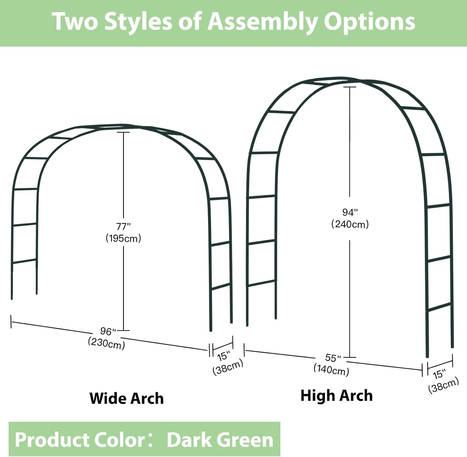 Environ 139,7 cm de largeur x 238,8 cm de hauteur, cette tonnelle de taille réelle crée une superbe entrée à votre jardin, terrasse ou allée.