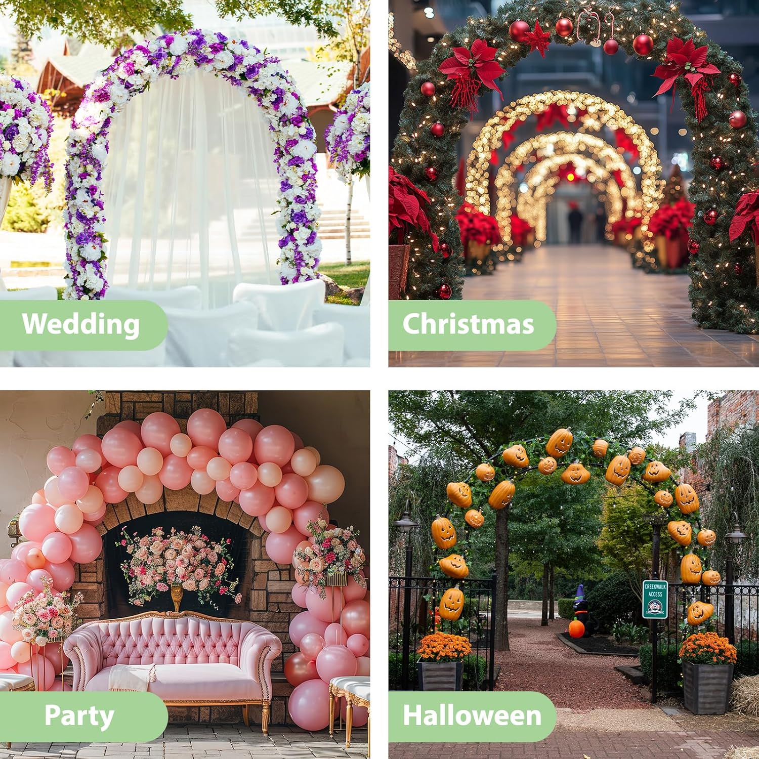 Non seulement un treillis de jardin pour plantes grimpantes, mais aussi un support d’arche de ballons pour les anniversaires et une arche décorative pour les mariages.