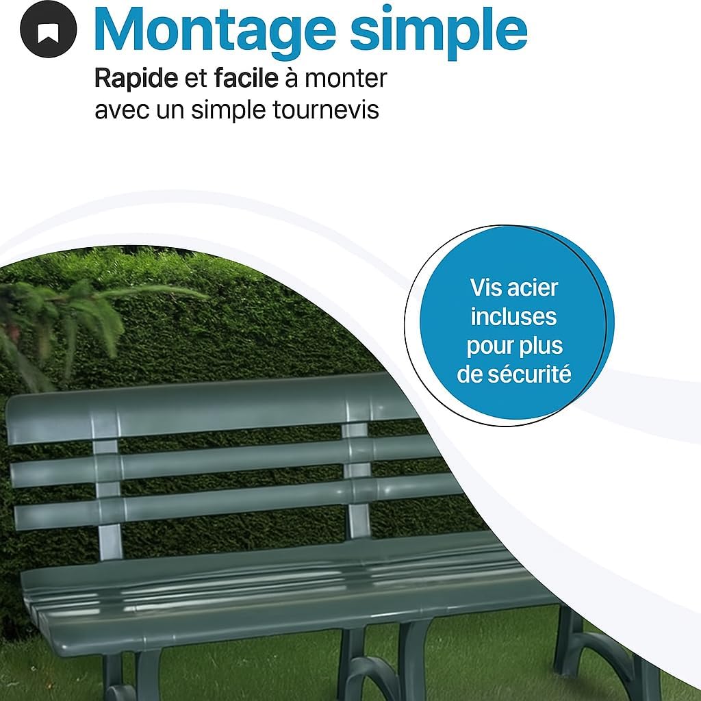 Montage : banc d’extérieur facile à monter, nous avons amélioré le système de montage en insérant des vis en acier pour rendre le banc plus sûr