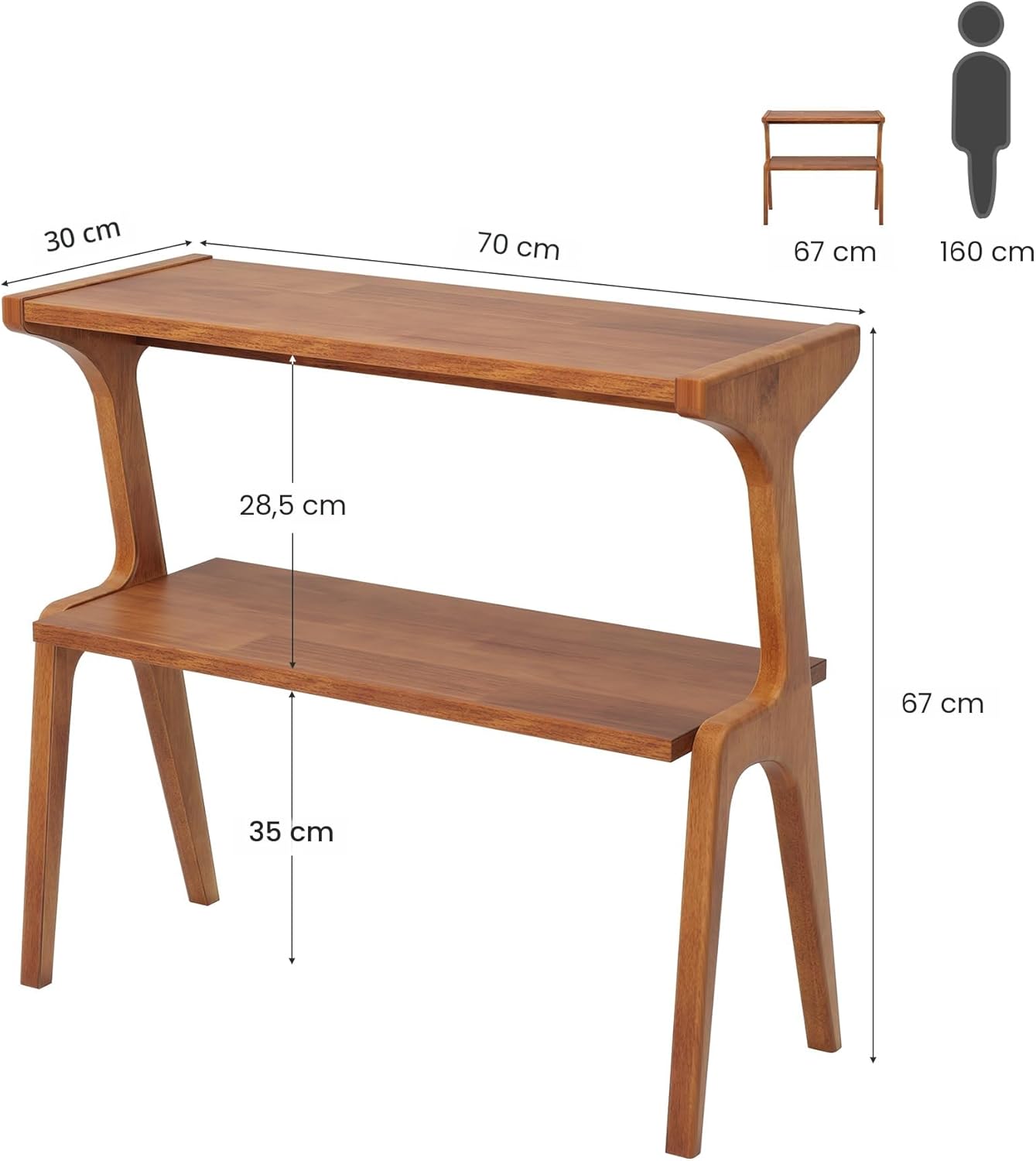 Solution peu encombrante : mesurant 30 cm de profondeur x 70 cm de large x 67 cm de haut, cette table d’appoint mince optimise l’espace sans compromettre la fonctionnalité. Les deux étagères de rangement offrent suffisamment d’espace pour les articles quotidiens, vous aidant à garder votre salon organisé