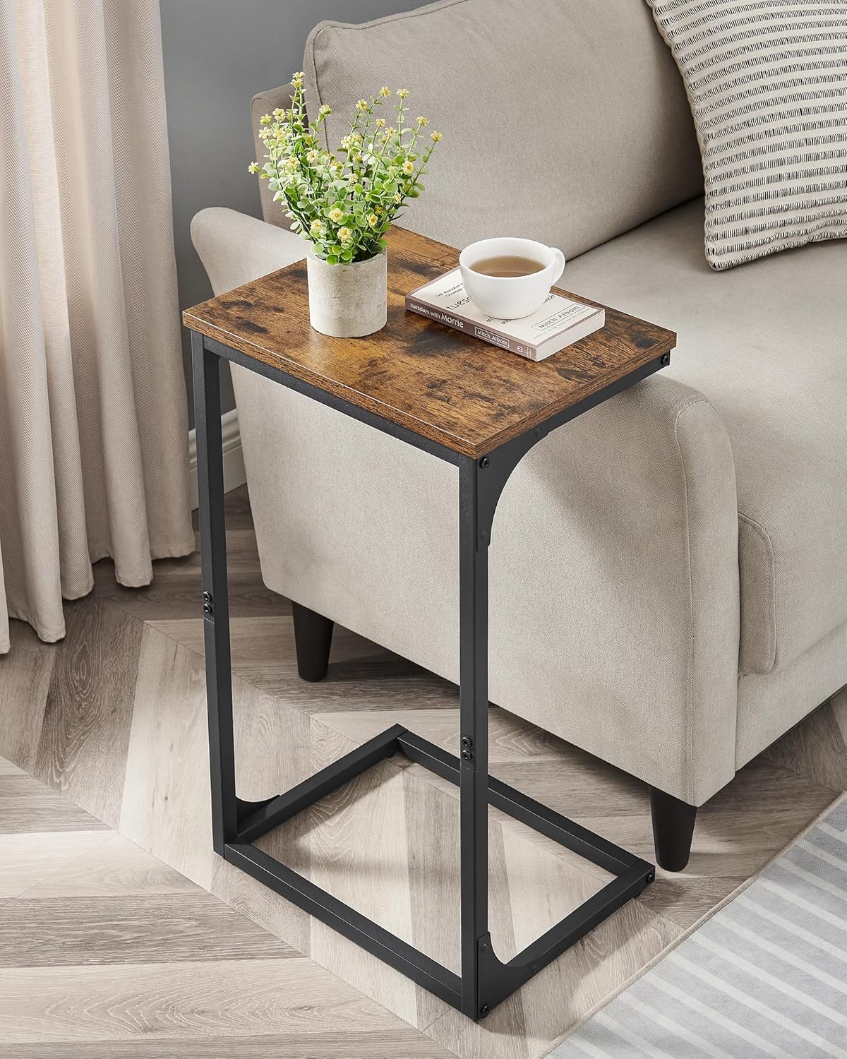 [Parfait pour le canapé] Cette table d’appoint en forme de C avec un cadre inférieur bas de 2,8 cm se glisse facilement sous votre canapé, et le dessus de table de 66,7 cm de haut s’adapte sur le bras de votre canapé pour un accès facile aux articles dessus